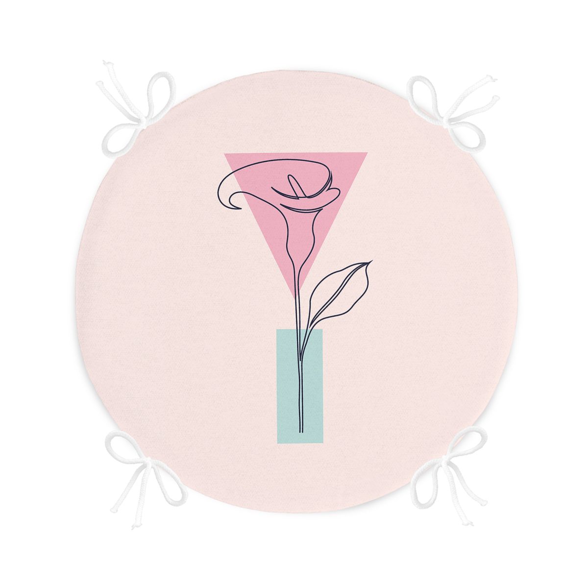 Pembe Zeminde Gül Motifli Bohemian Yuvarlak Fermuarlı Sandalye Minderi