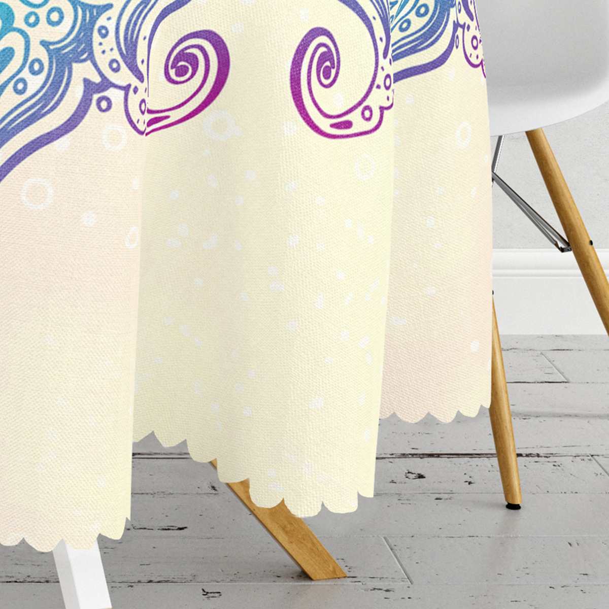 Beyaz Zemin Üzerinde Soyut Yaprak Çizimli Yuvarlak Masa Örtüsü - Çap 140cm Orijinal fiyat: 624,99 ₺.Şu andaki fiyat: 539,99 ₺.