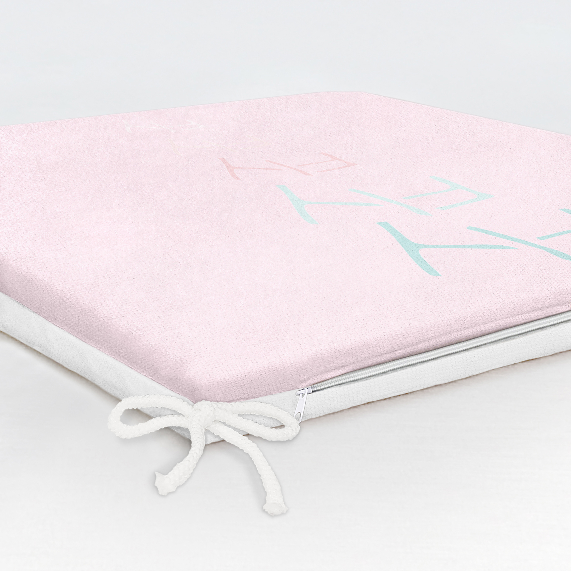 Pembe Zeminde Renkli Fly Yazılı Özel Tasarımlı Dijital Baskılı Çocuk Odası Fermuarlı Sandalye Minderi Realhomes