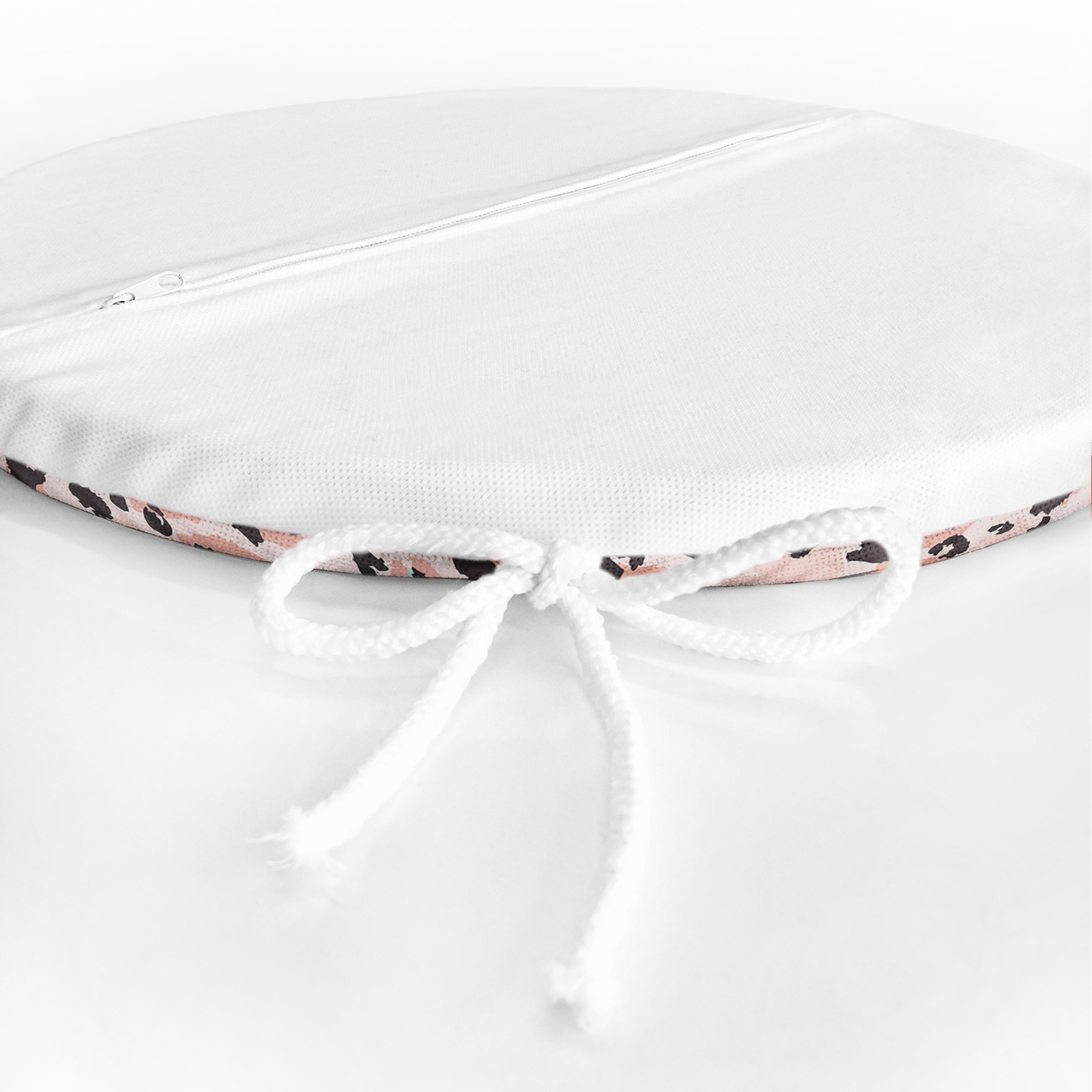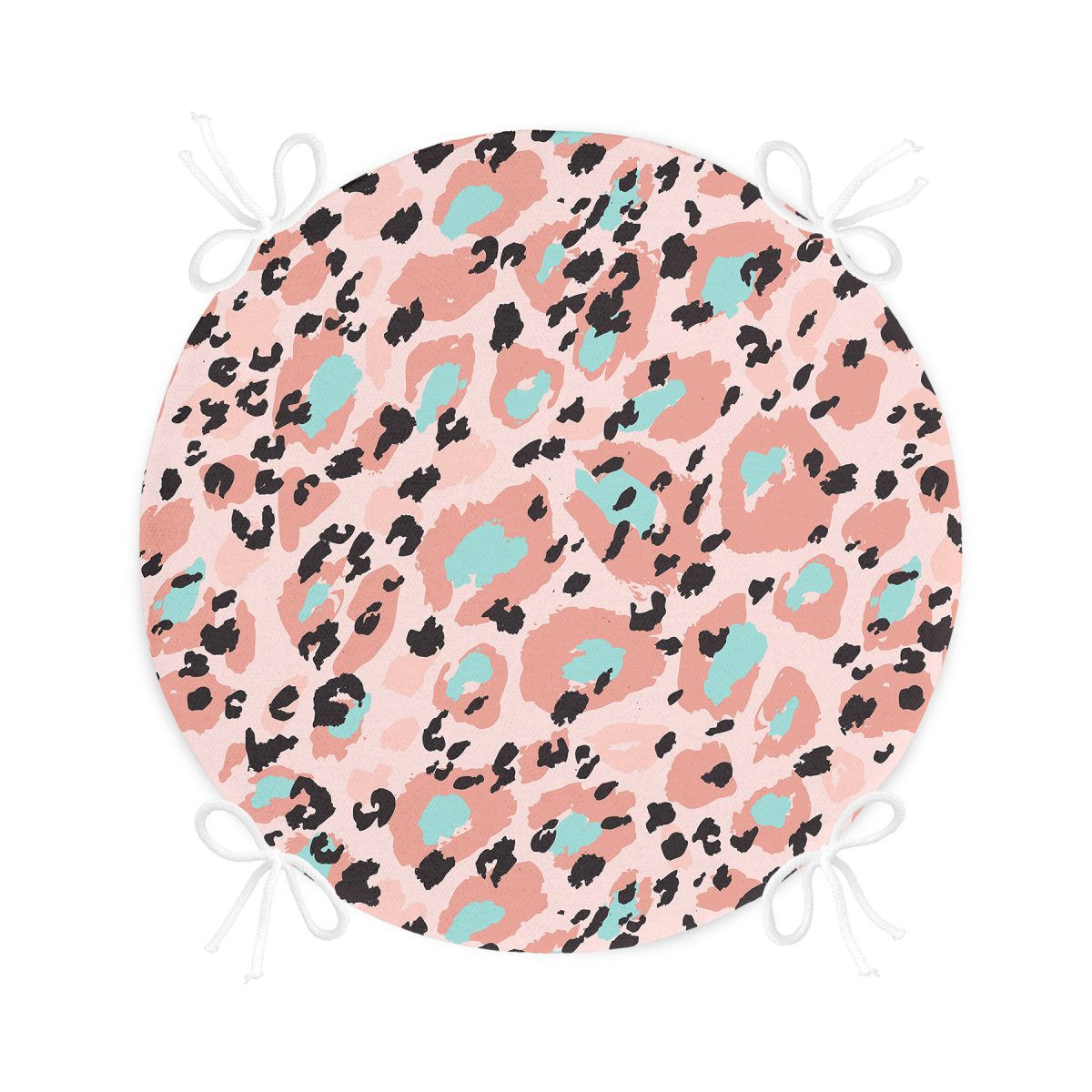 Pembe Zeminde Siyah Leopar Dijital Baskılı Yuvarlak Fermuarlı Sandalye Minderi