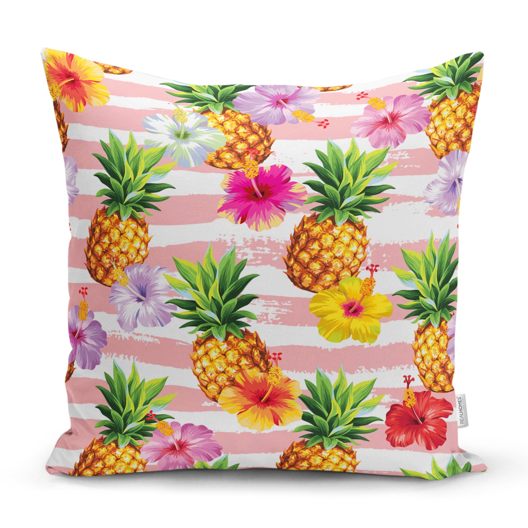 Pembe Zeminli Ananaslar Özel Tasarım Yastık Kırlent Kılıfı Realhomes