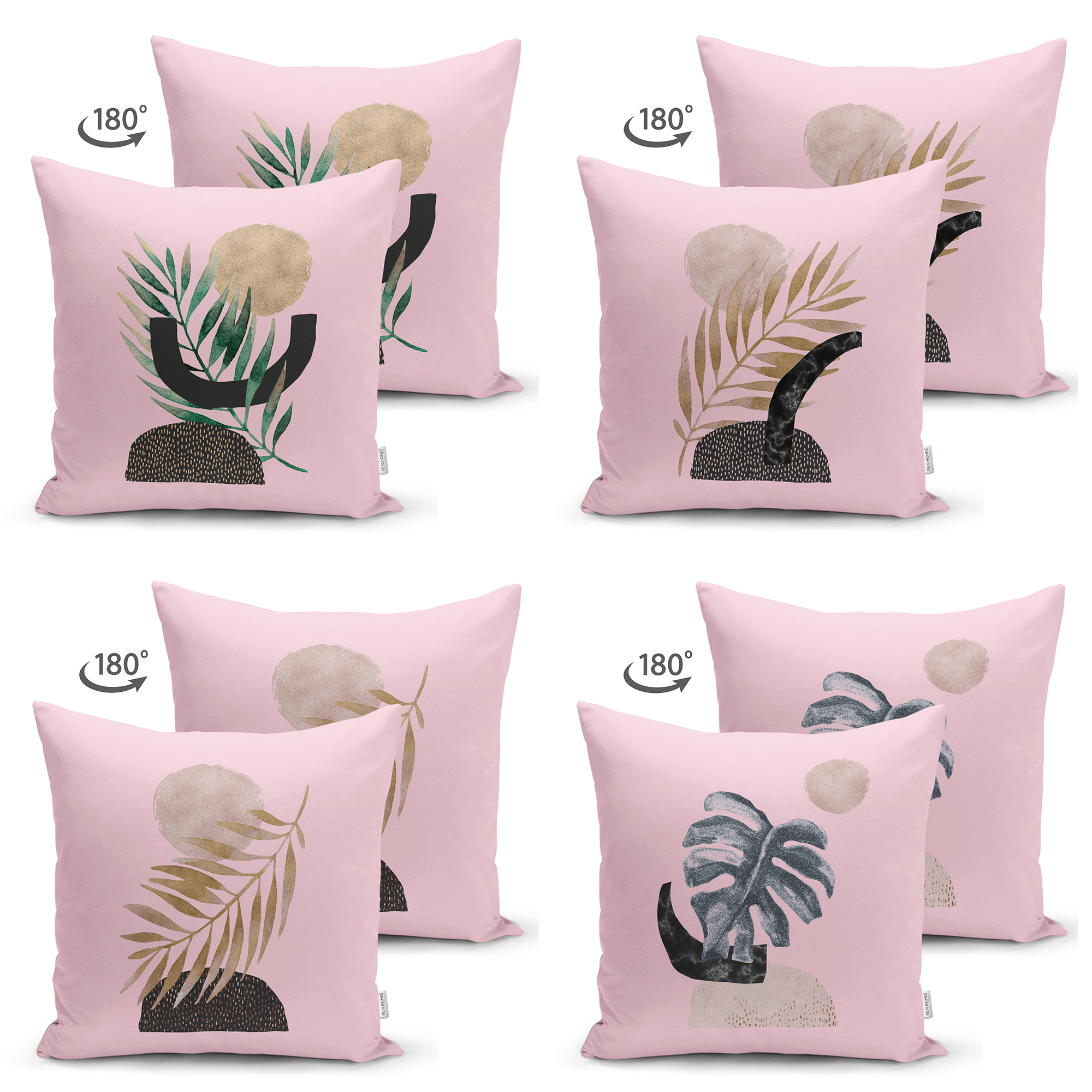 RealHomes Çift Tarafı Dijital Baskılı Süet Kumaş Yastık Kırlent Kılıfı Seti