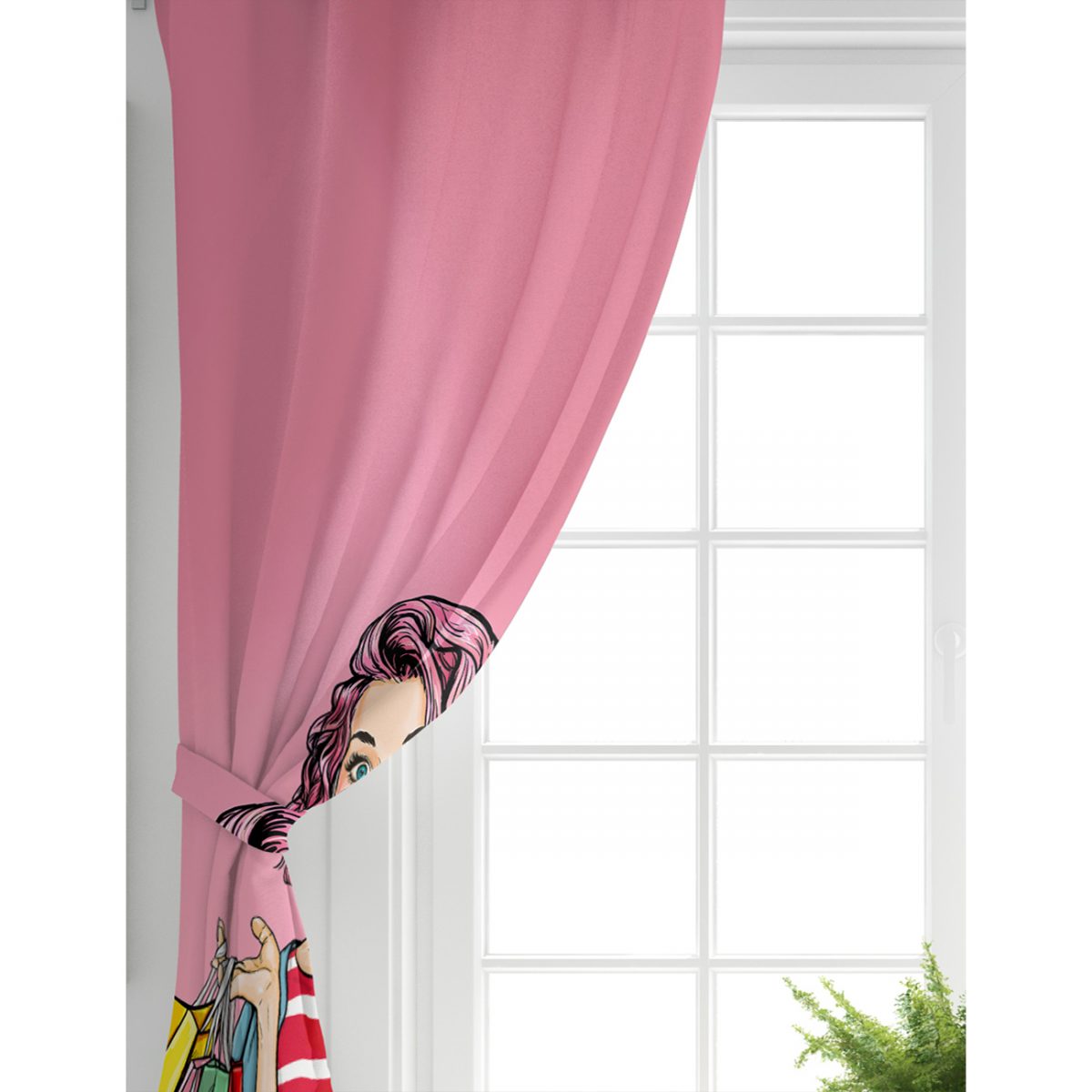 Pembe Zeminli Popart Desenli Salon Fon Perde
