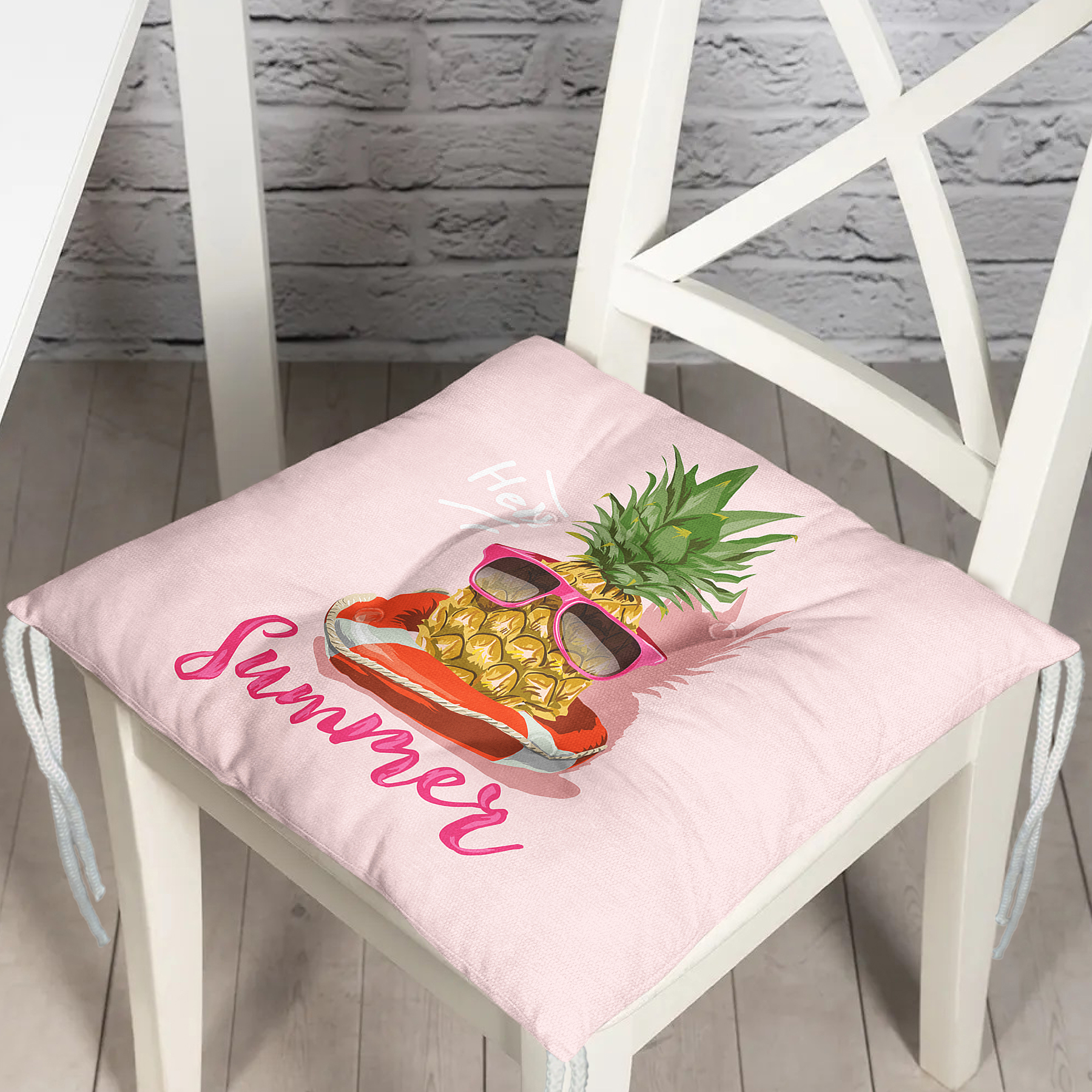 Pembe Zeminli Summer Ananas Desenli Pofuduk Sandalye Minderi