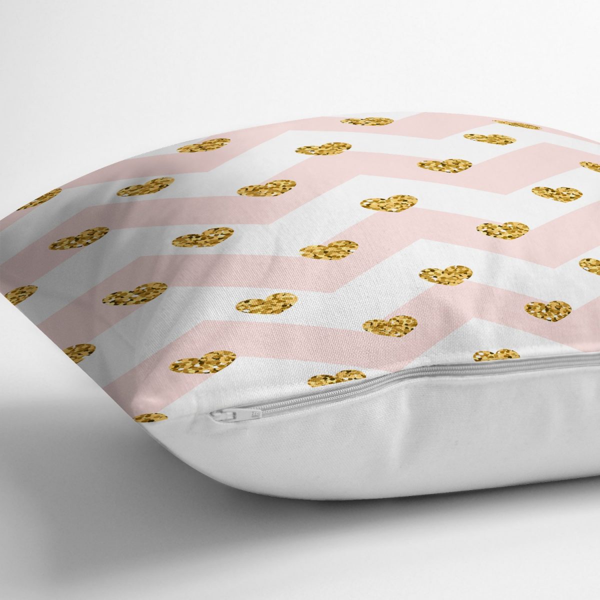 Pembe Zigzag Desenli Altın Detaylı Modern Yastık Kırlent Kılıfı