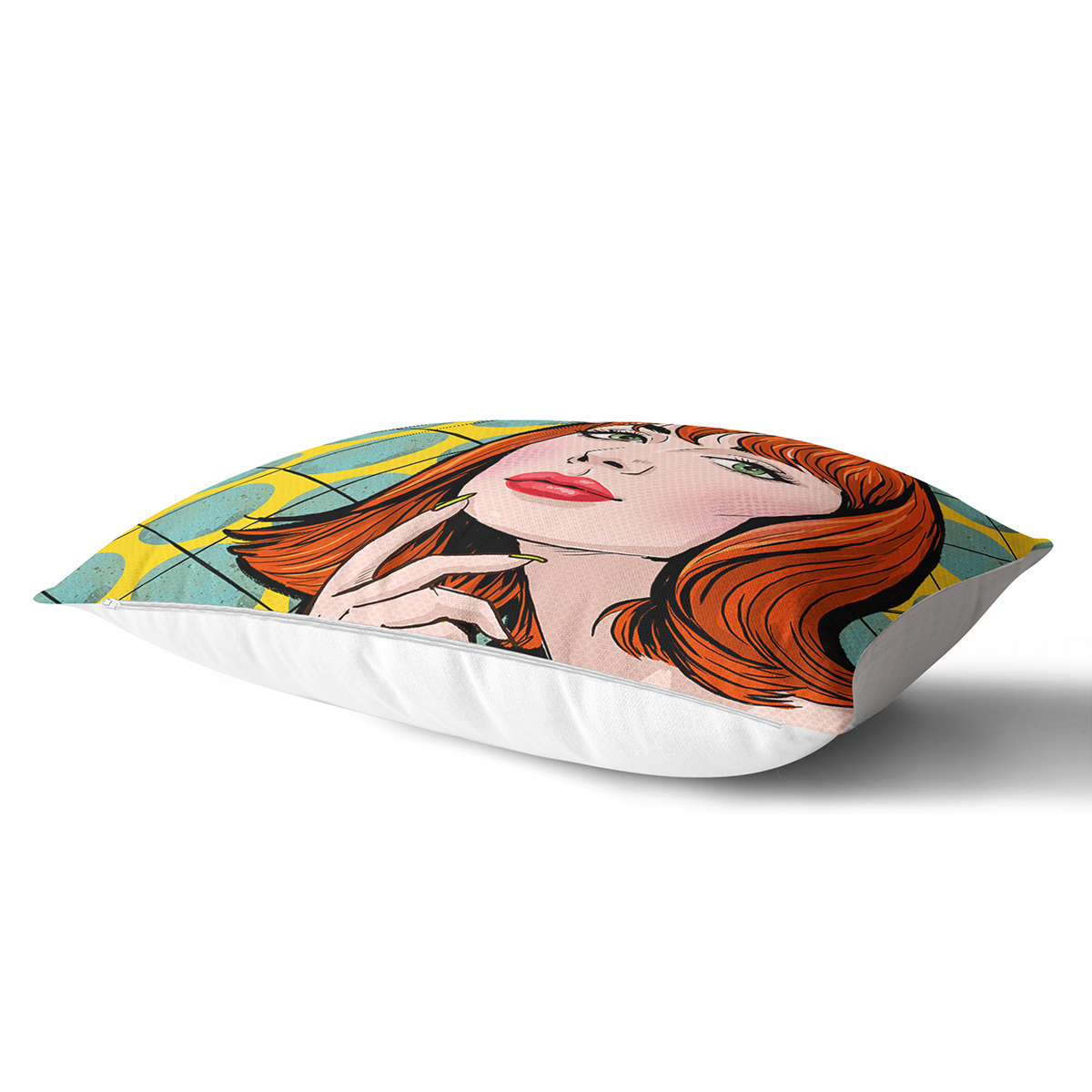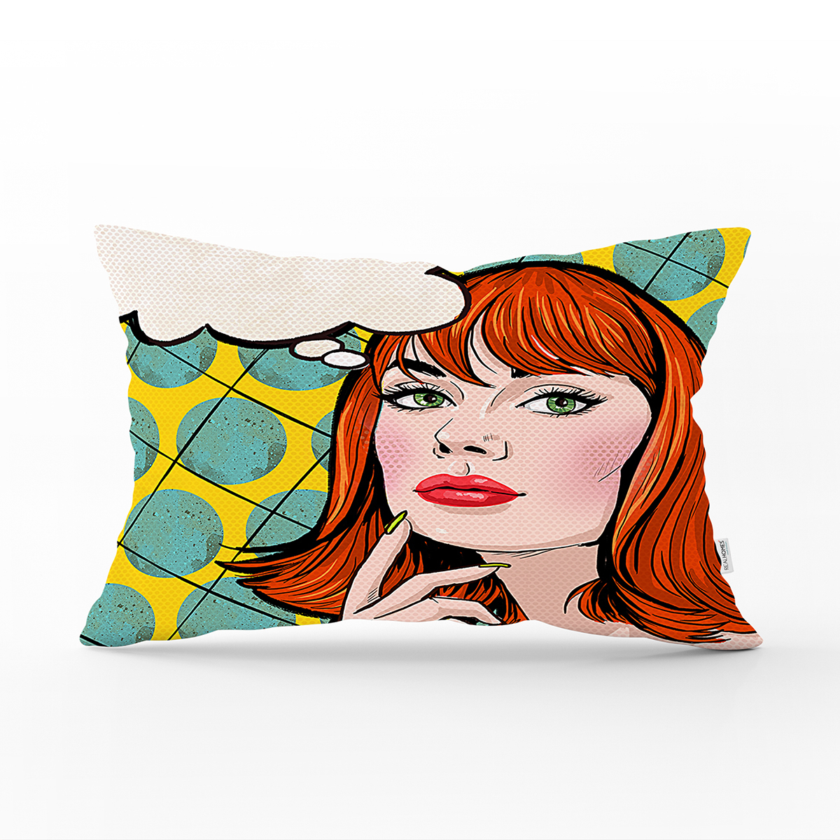 Pop Art Resimli Dijital Baskılı Dekoratif Dikdörtgen Yastık Kırlent Kılıfı
