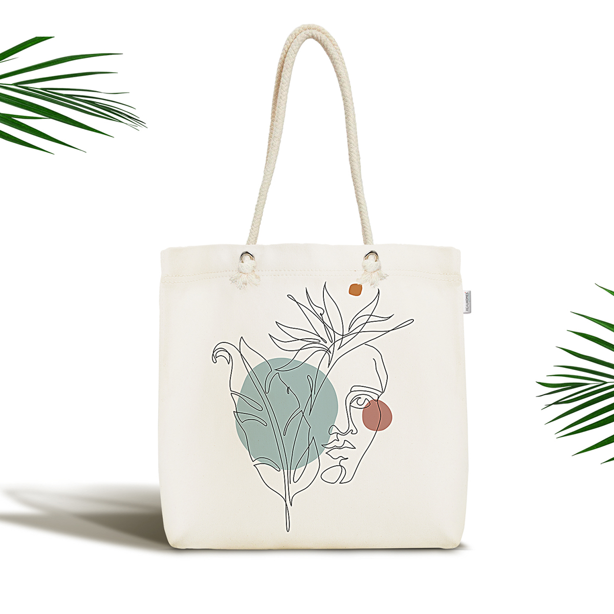 Portre Çizim Üzerinde Yaprak Desenli Kumaş Plaj Çantası Realhomes