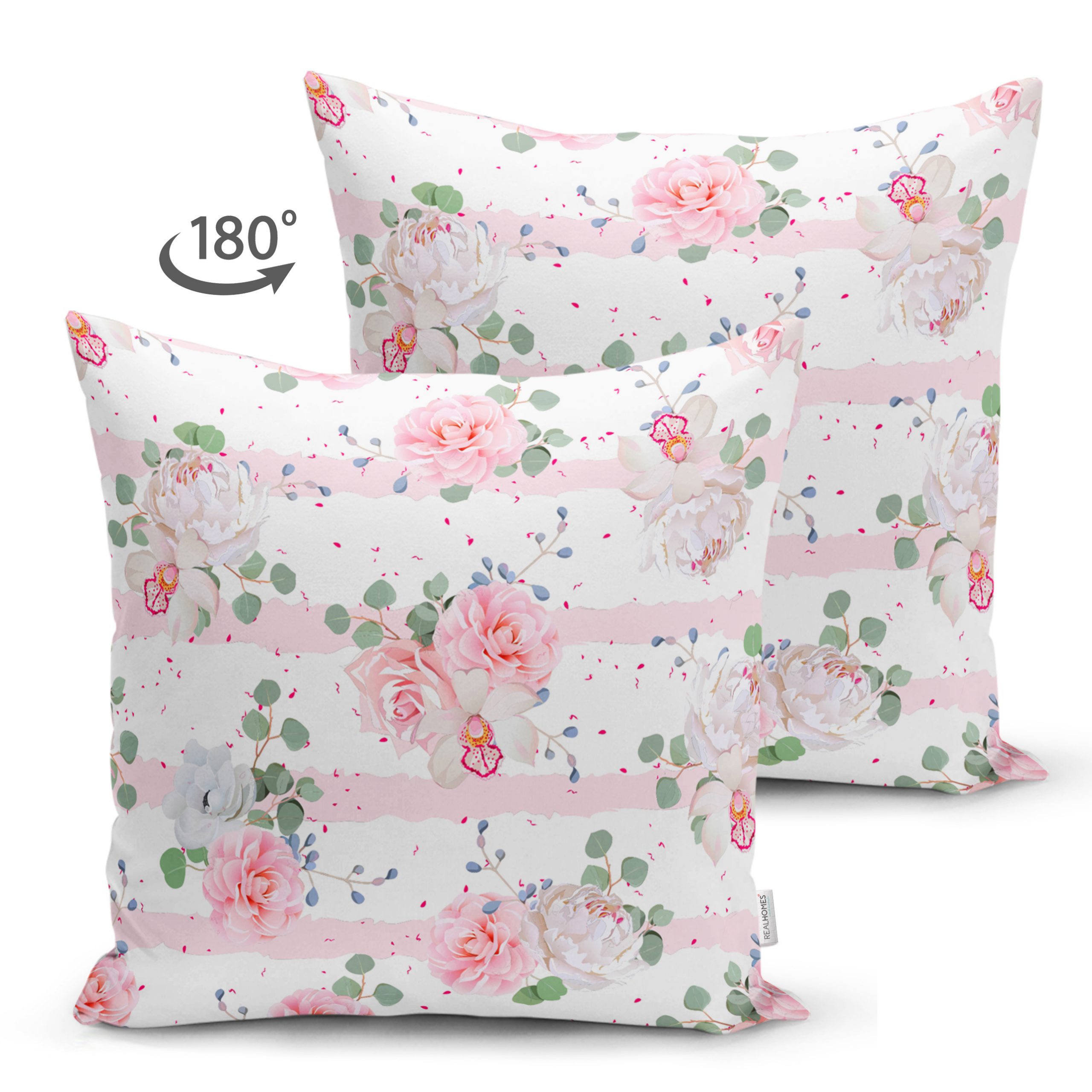 Pudra Beyaz Yatay Temalı Dijital Baskılı Çift Taraflı Süet Yastık Kırlent Kılıfı Realhomes