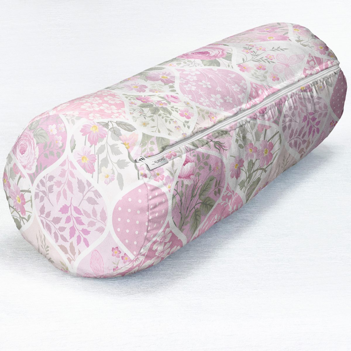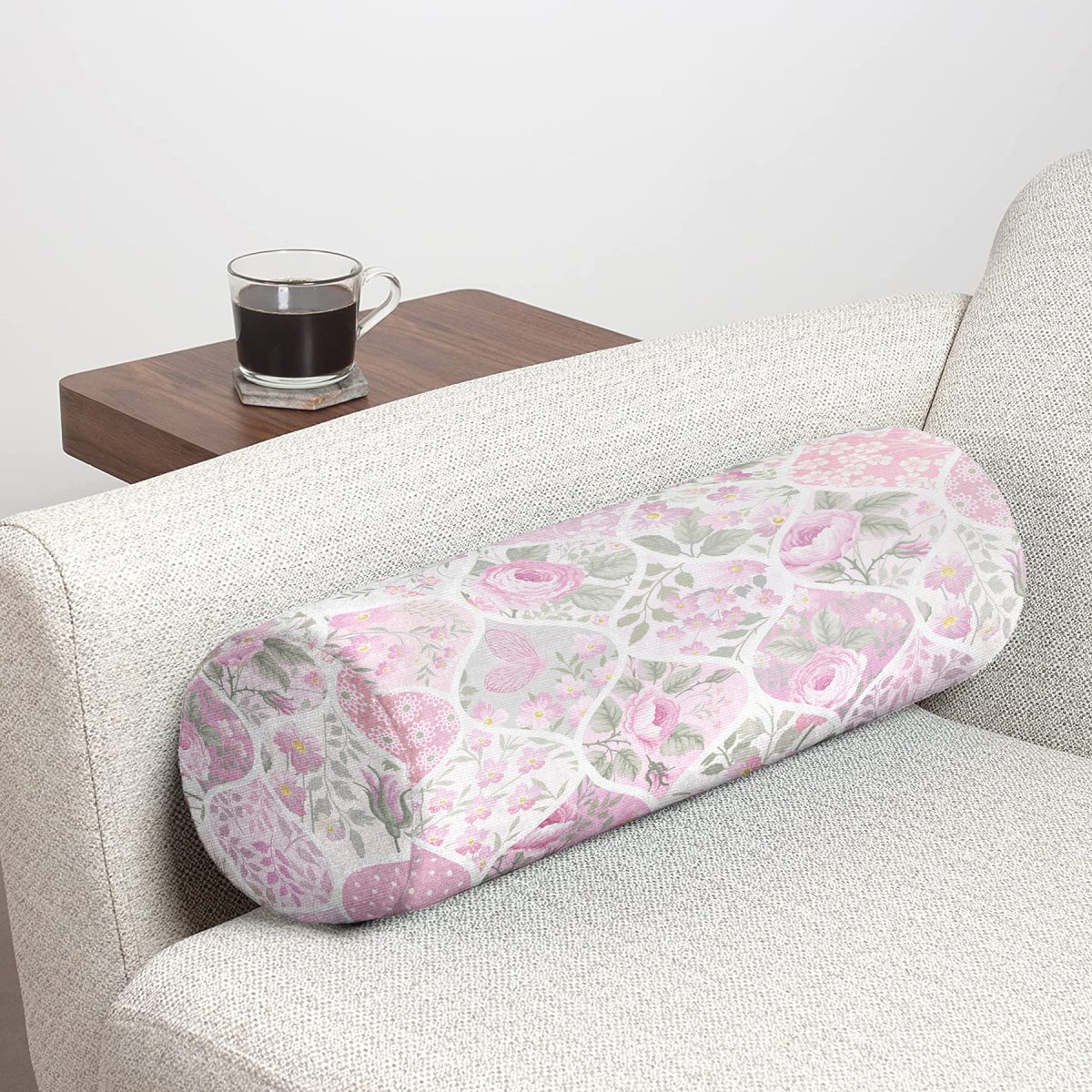 Pudra Çiçekler Temalı Dekoratif İç Dolgulu Süet Silindir Yastık Kırlent – Bel Yastığı