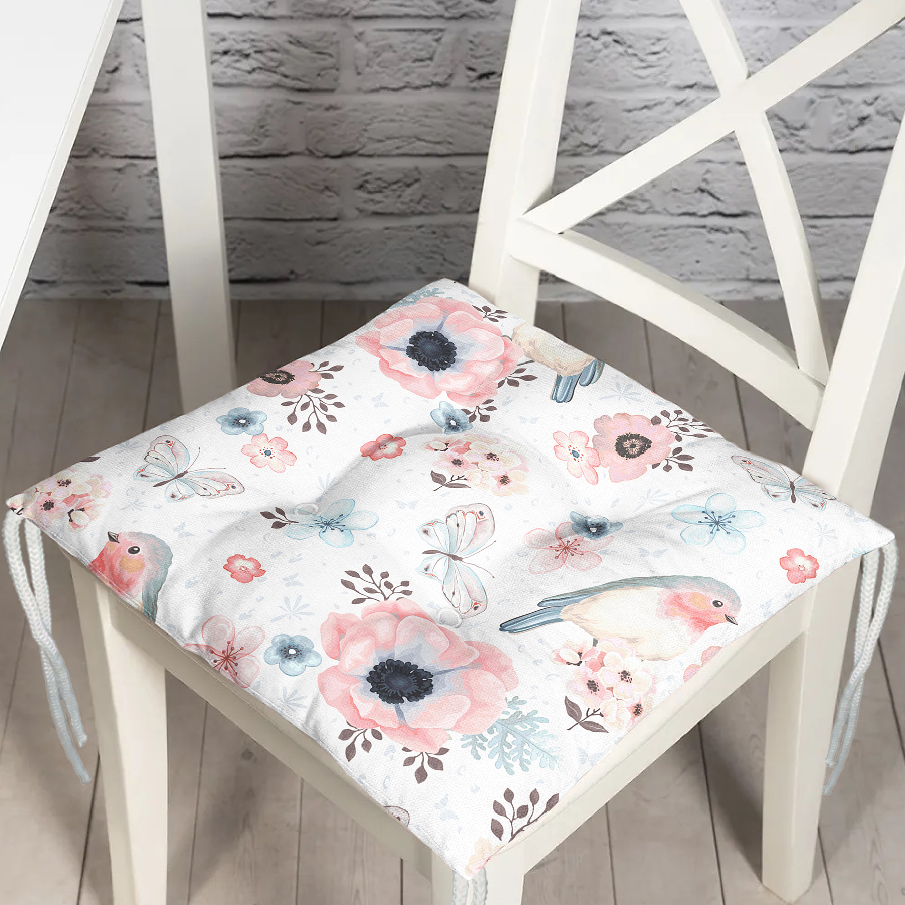 Pudra Mavi Kelebek Çiçek Modern Dijital Baskılı Pofuduk Sandalye Minderi Realhomes