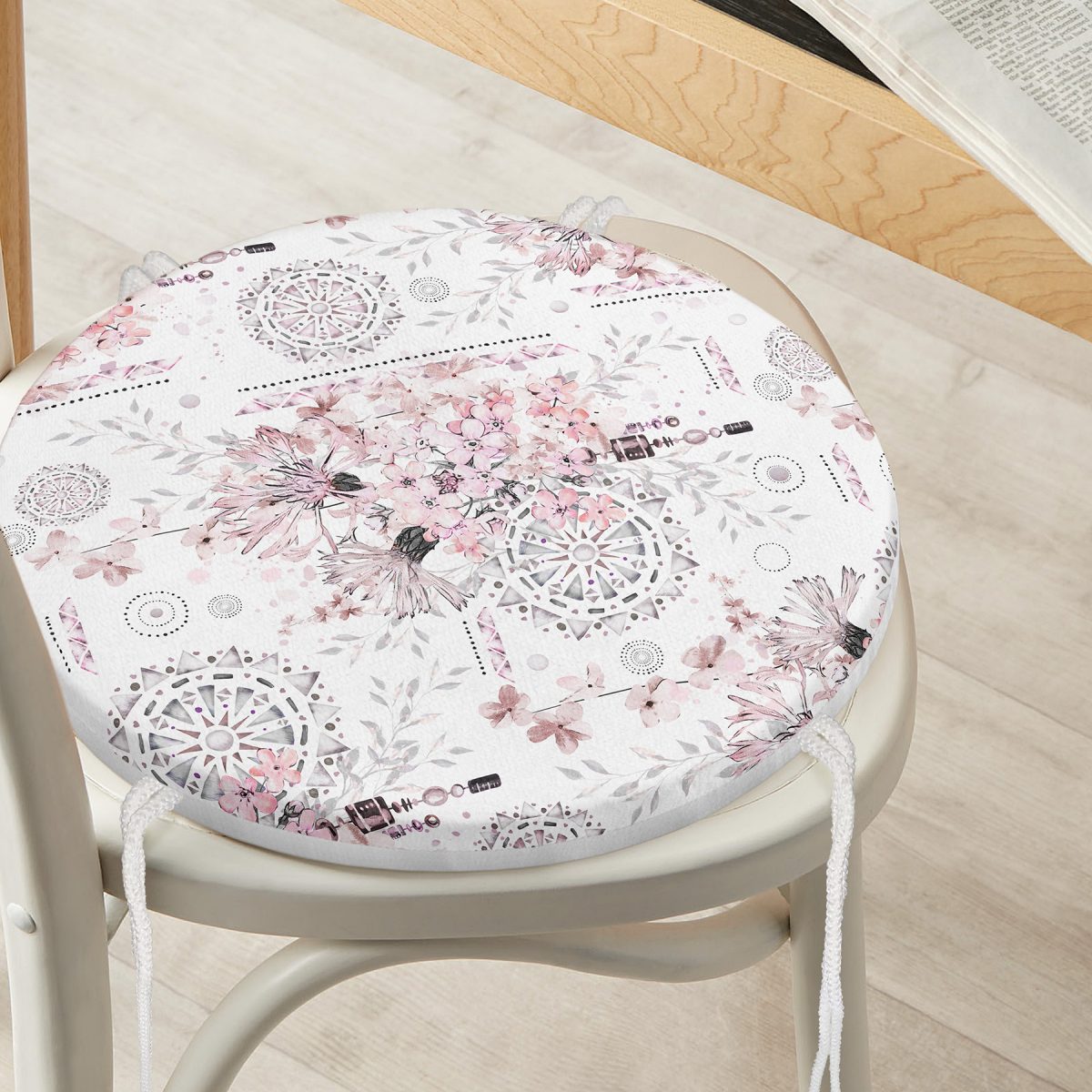 Pudra Renk İşleyen Çarklar Motifli Yuvarlak Fermuarlı Sandalye Minderi
