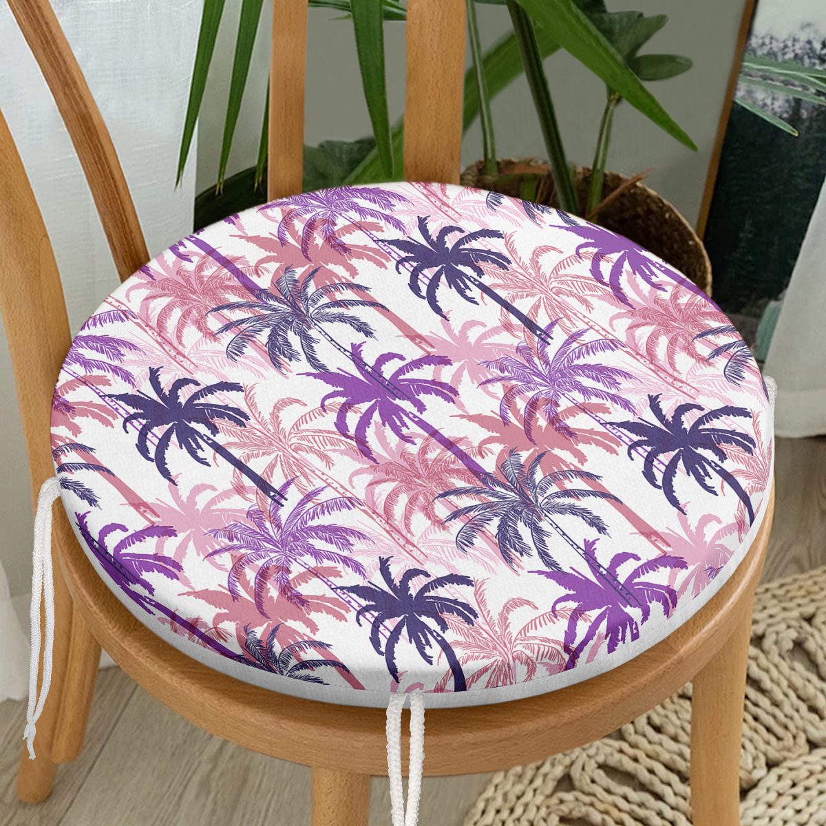 RealHomes Dijital Baskılı Yuvarlak Fermuarlı Sandalye Minderi