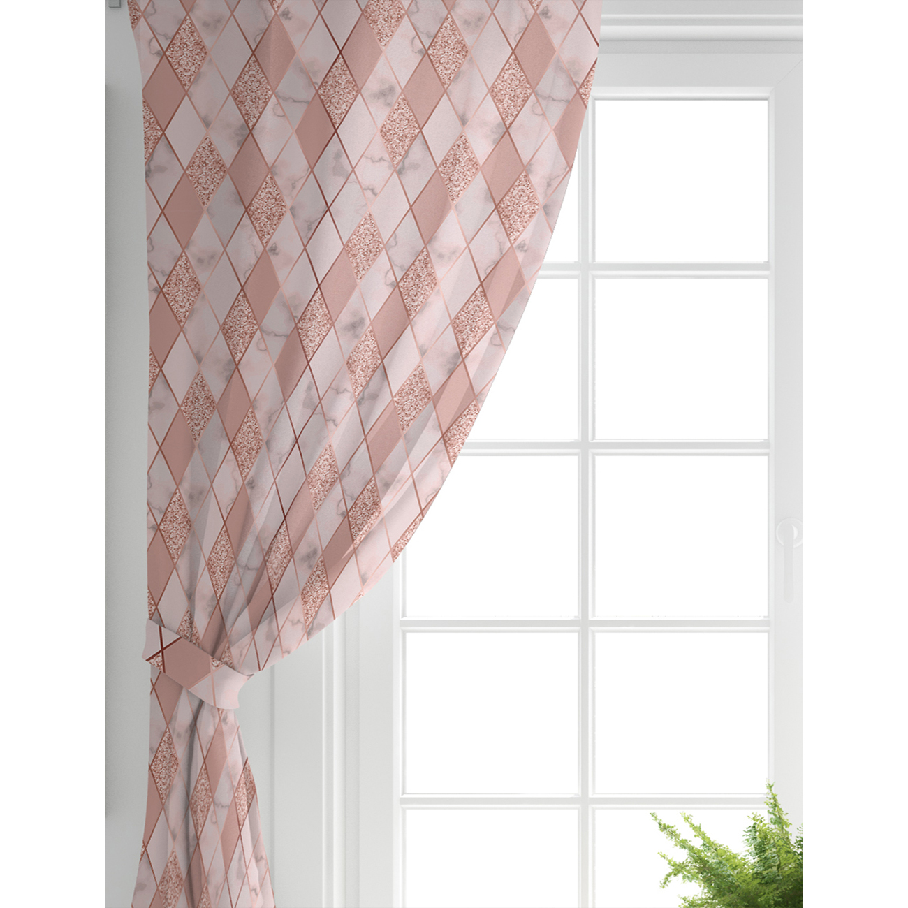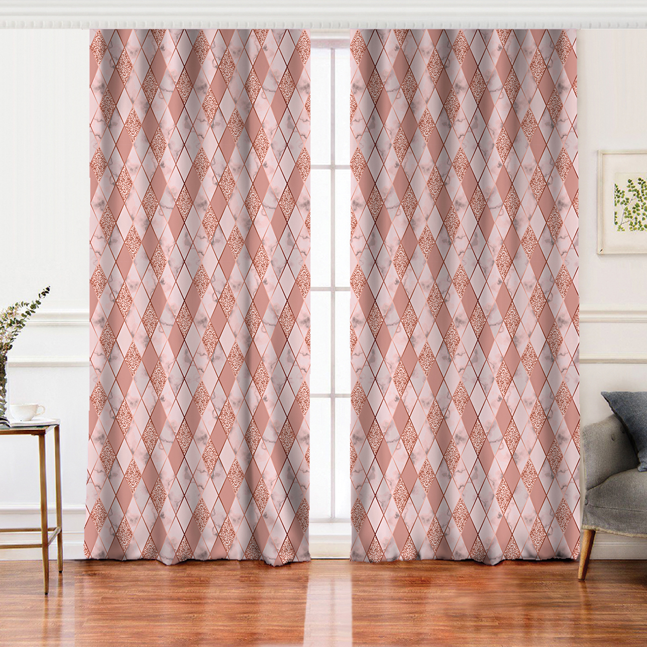 Pudra Renkli Üçgen Zeminli Modern Salon Fon Perde