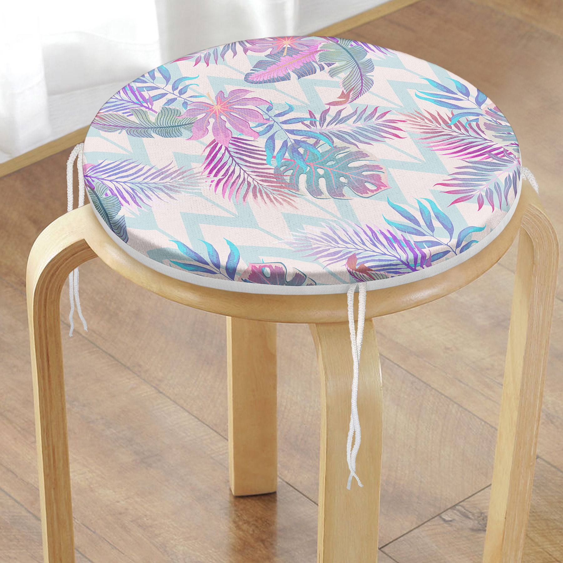Pudra Zeminli Geometrik Palmiye Yaprakları Modern Yuvarlak Fermuarlı Sandalye Minderi