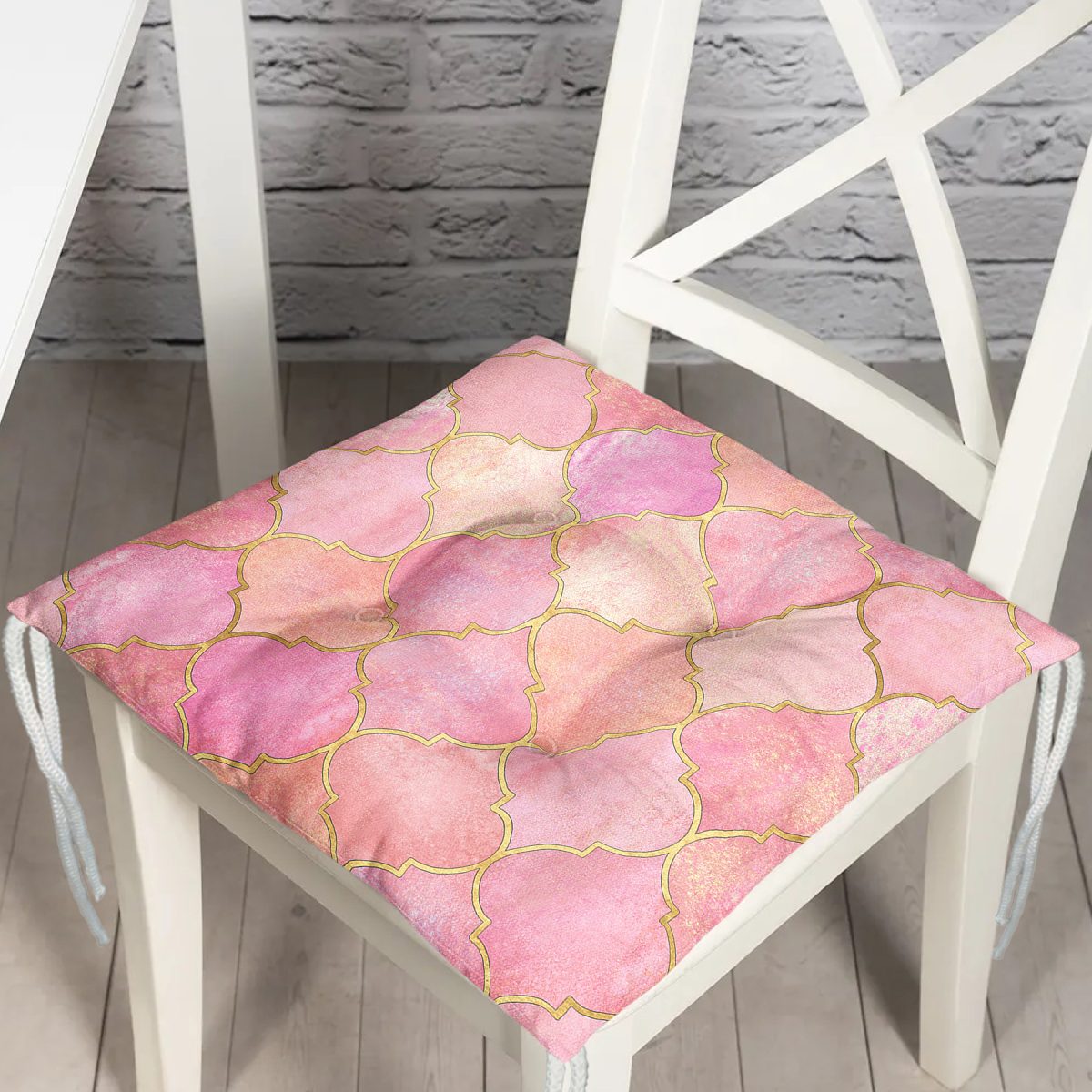 Pudra Zeminli Ogea Desenli Özel Tasarım Modern Pofuduk Sandalye Minderi Realhomes