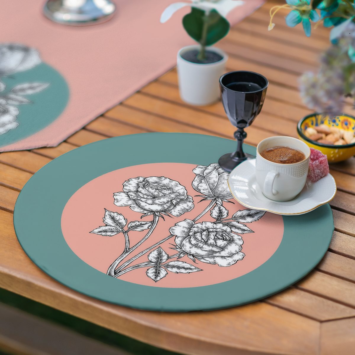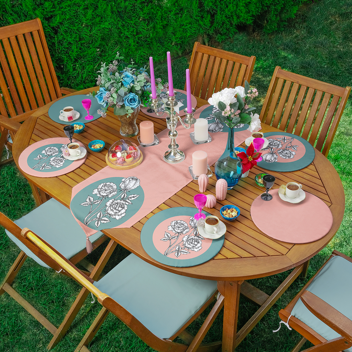 Ürün Ölçüleri: Suplalar: 34 x 34 cm (Yuvarlak) – Runner: 45 x 140 cm