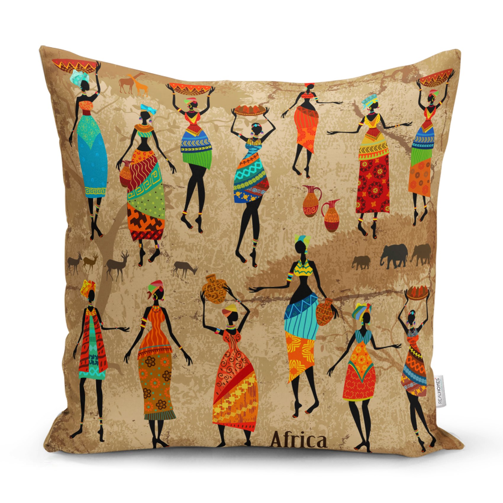 RealHomes Afrika Etnik Desenli Dijital Baskılı Modern Yastık Kırlent Kılıfı Realhomes