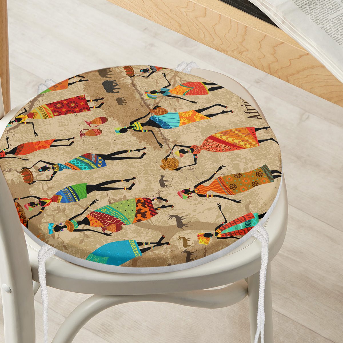 Realhomes Afrika Etnik Desenli Dijital Baskılı Modern Yuvarlak Fermuarlı Sandalye Minderi Realhomes