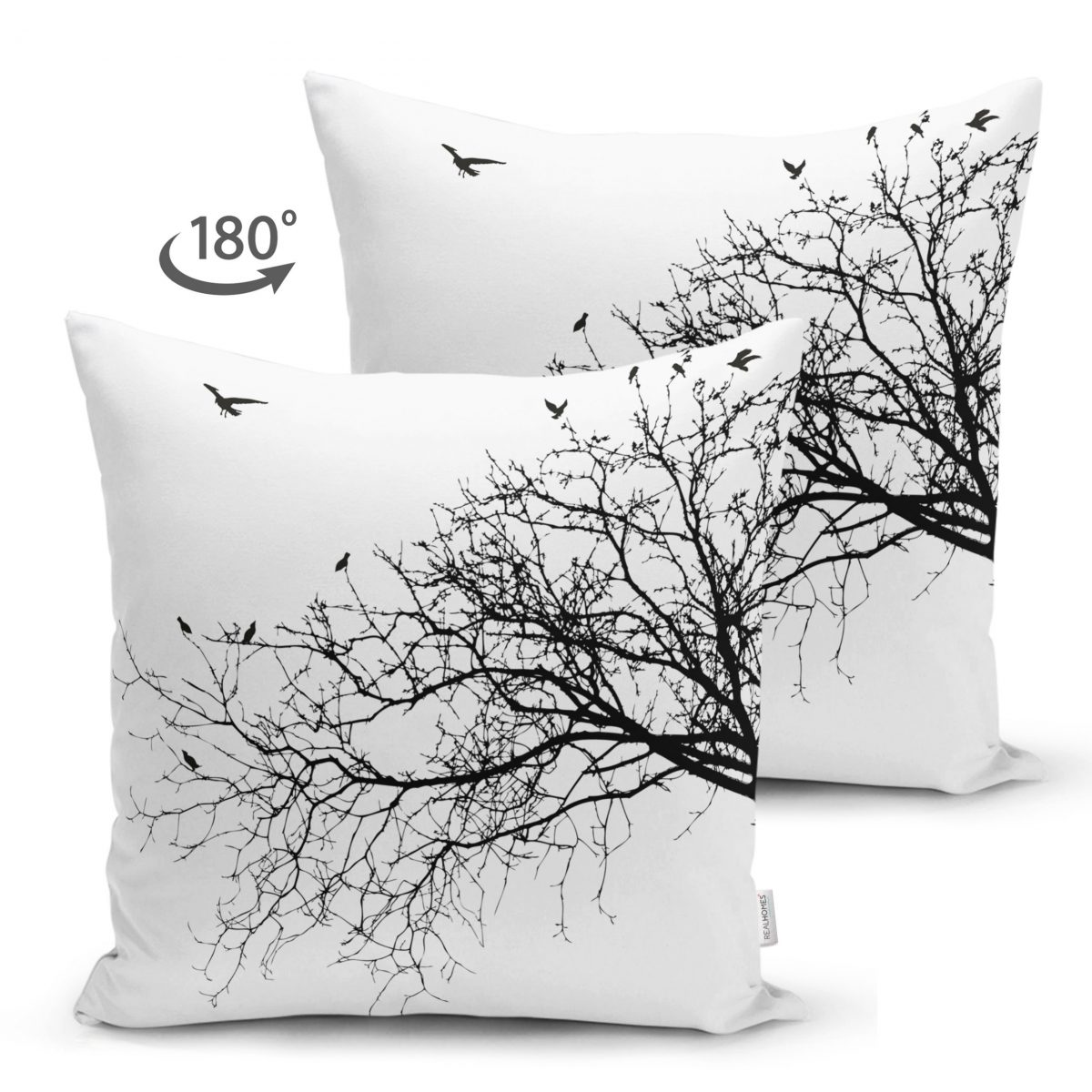 Realhomes Ağaç Dalı Kuş Tasarımlı Çift Taraflı Dijital Baskılı Süet Kırlent Kılıfı Realhomes