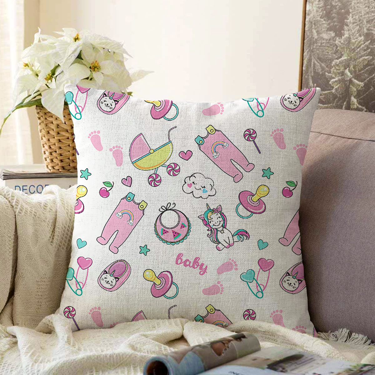 Realhomes Baby Motifli Özel Tasarım Dijital Baskılı Modern Raşel Kadife Yastık Kırlent Kılıfı