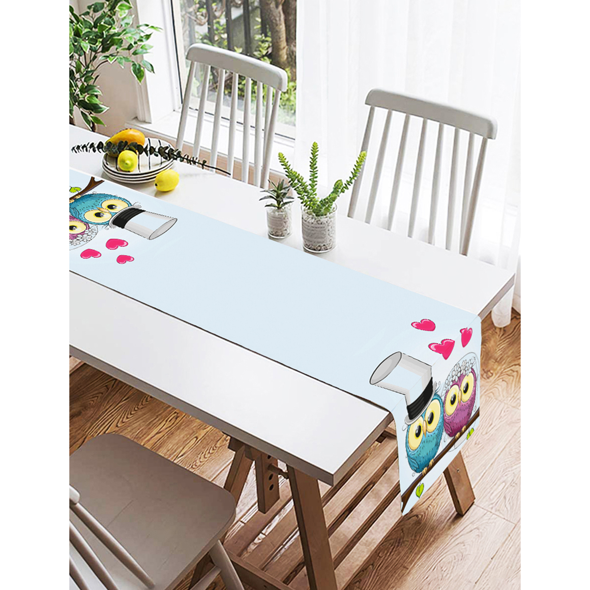 Realhomes Baykuş Desenli Dijital Baskılı Dekoratif Özel Tasarım Süet Runner