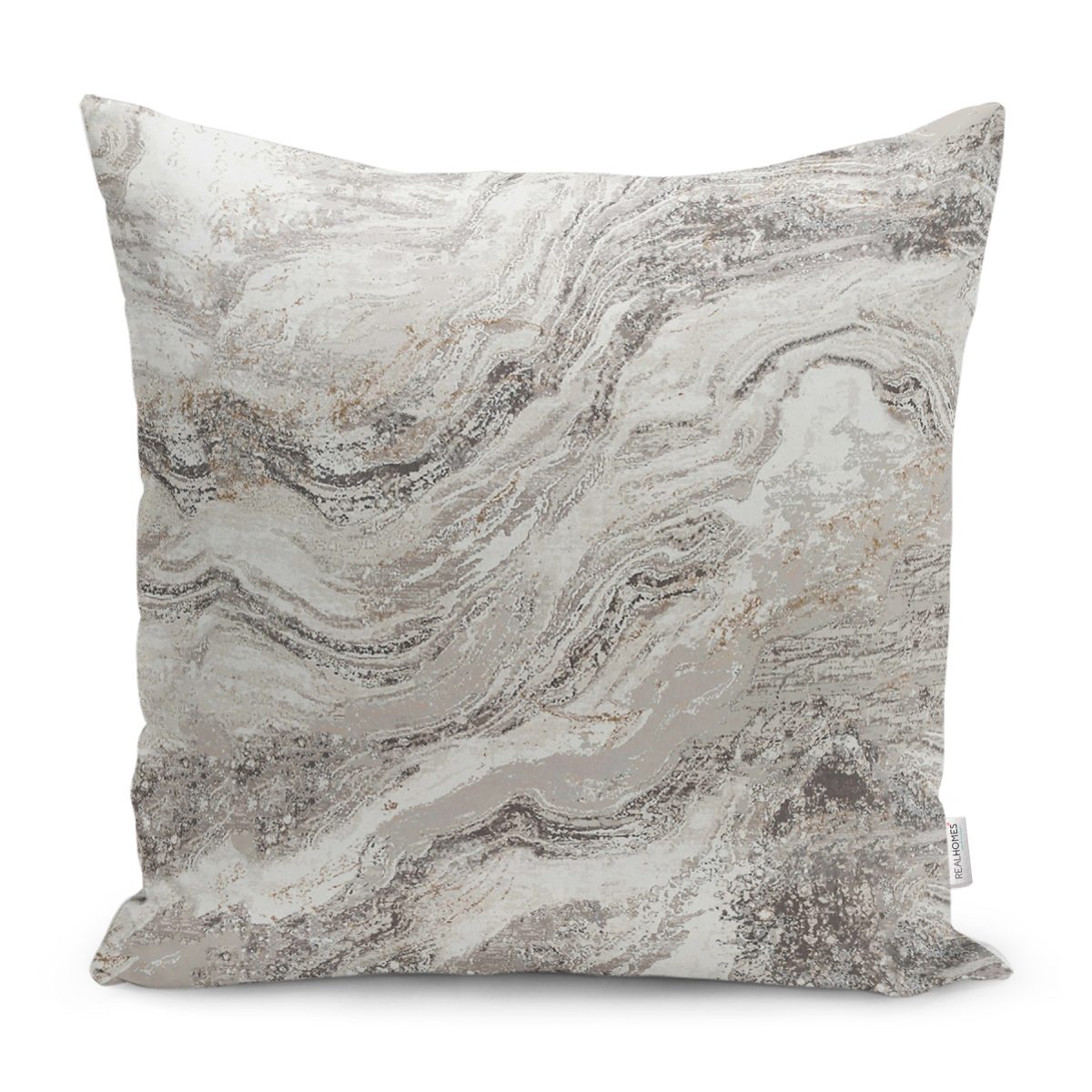 RealHomes Bej - Krem Zeminde Eskitme Motifli Mermer Desenli Dijital Baskılı Yastık Kırlent Kılıfı Realhomes