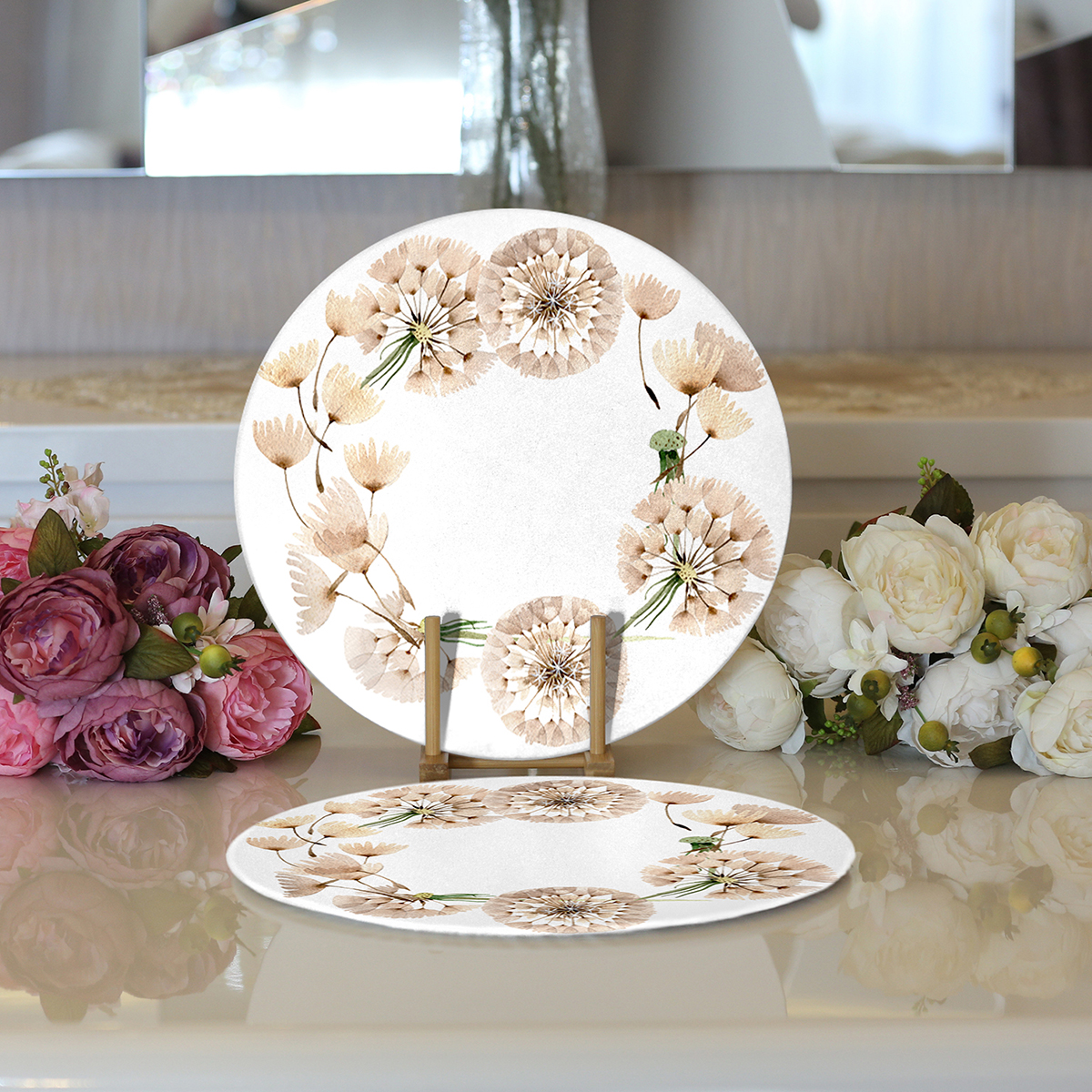Realhomes Beyaz Zemin Üzerinde Çiçek Desenli Dijital Baskılı Modern 2'li Yuvarlak Servis Altlığı - Supla Realhomes