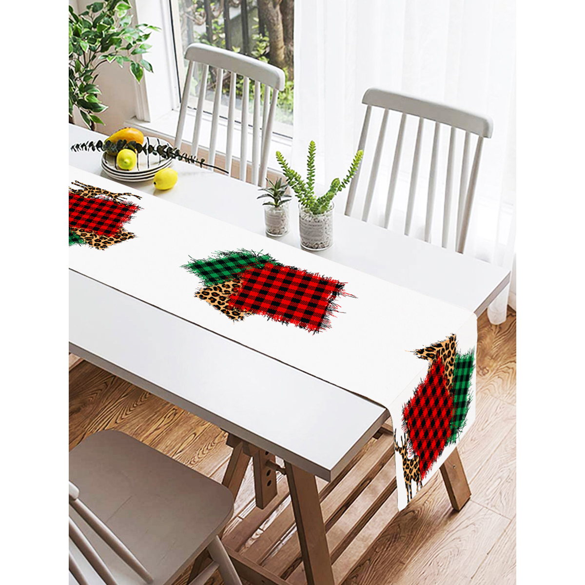 Realhomes Beyaz Zemin Üzerinde Ekoseli Kumaş Desenli Dijital Baskılı Özel Tasarım Süet Runner Realhomes