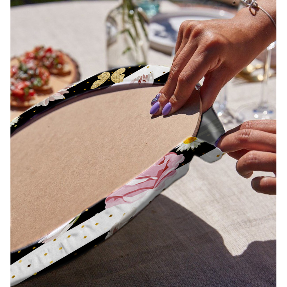 Realhomes Beyaz Zemin Üzerinde Siyah Yatay Çizgili Çiçek Desenli 2'li Yuvarlak Servis Altlığı - Supla Realhomes