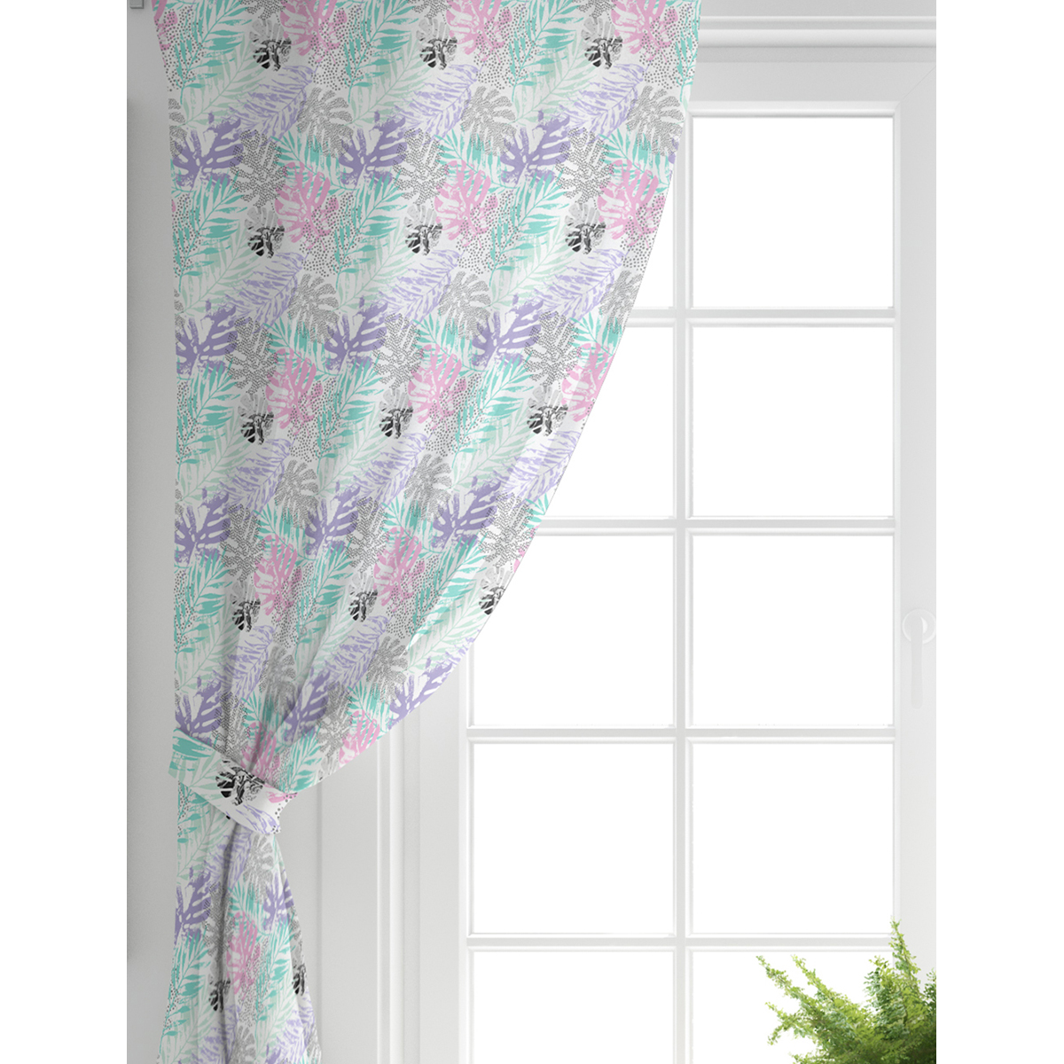 Realhomes Beyaz Zemin Üzerinde Sulu Boya Renkli Yaprak Çizimli Modern Salon Fon Perde