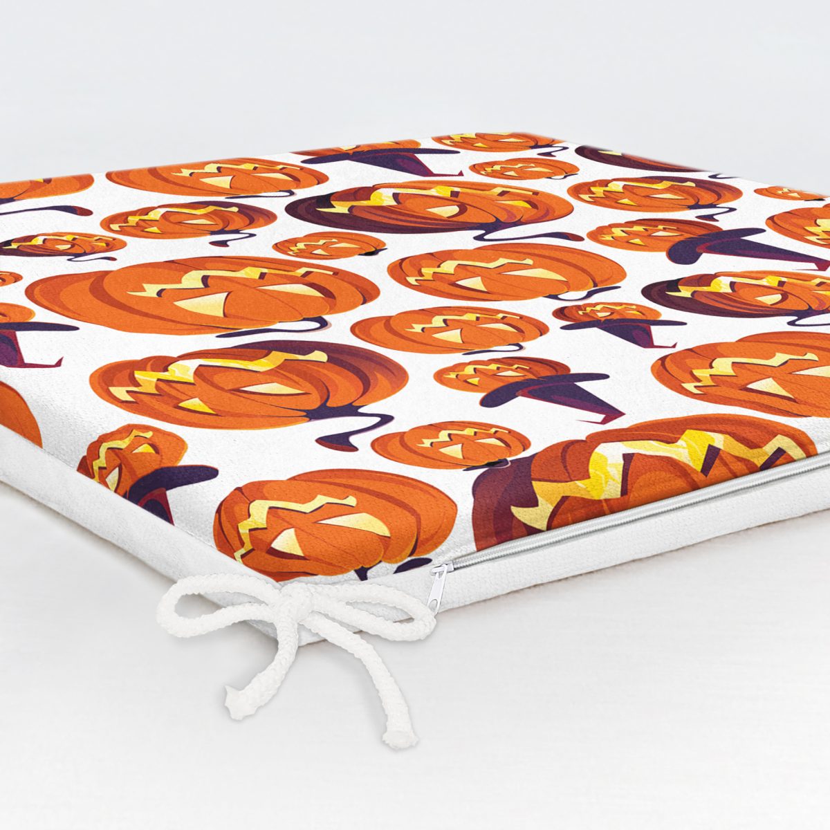 Realhomes Beyaz Zeminde Balkabağı Dijital Baskılı Modern Fermuarlı Sandalye Minderi