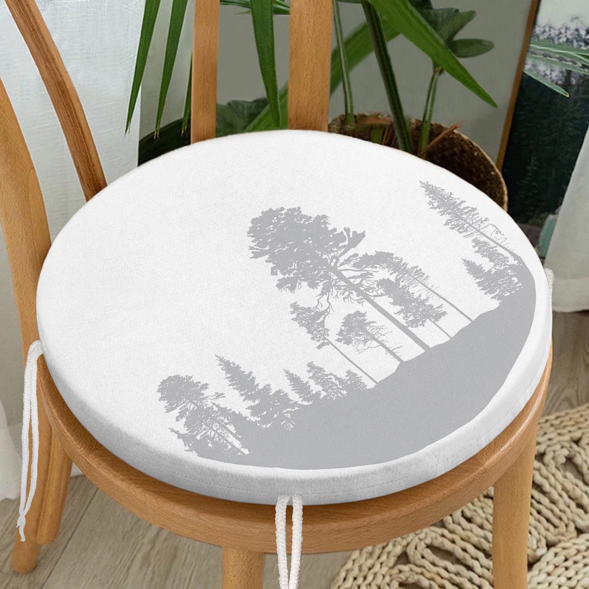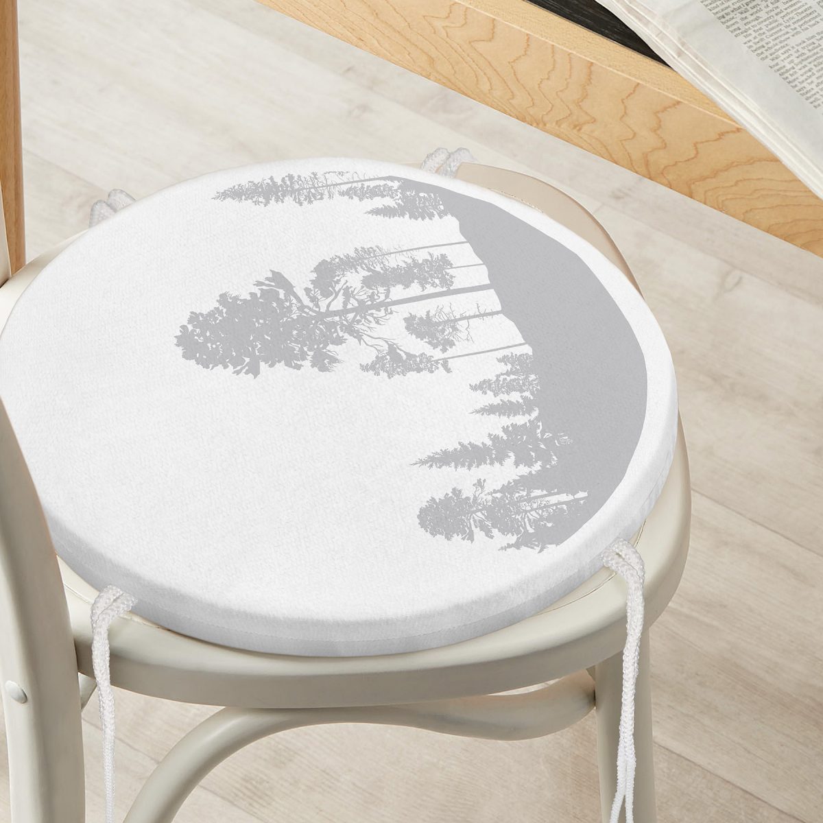 Realhomes Beyaz Zeminde Gri Ağaç Tasarımlı Yuvarlak Fermuarlı Sandalye Minderi