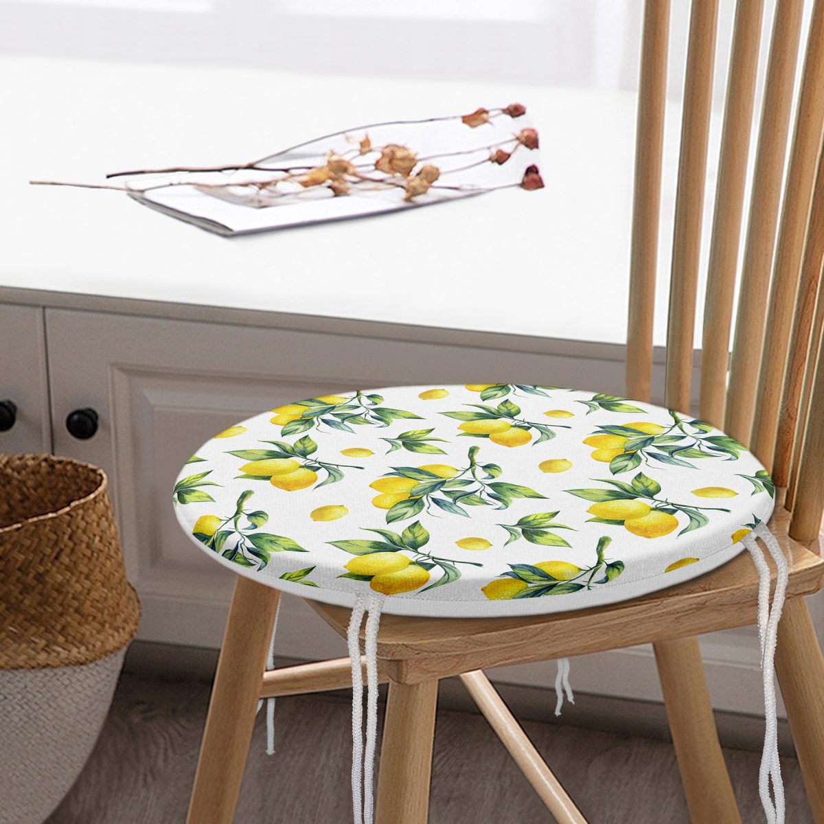 Realhomes Beyaz Zeminde Limon Desenli 3D Modern Yuvarlak Fermuarlı Sandalye Minderi