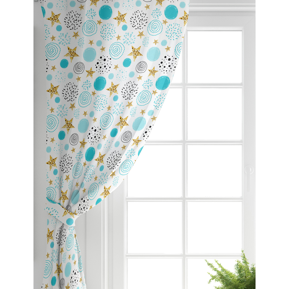 Realhomes Beyaz Zeminde Mavi Puan Gold Yıldızlı Dijital Baskılı Modern Salon Fon Perde