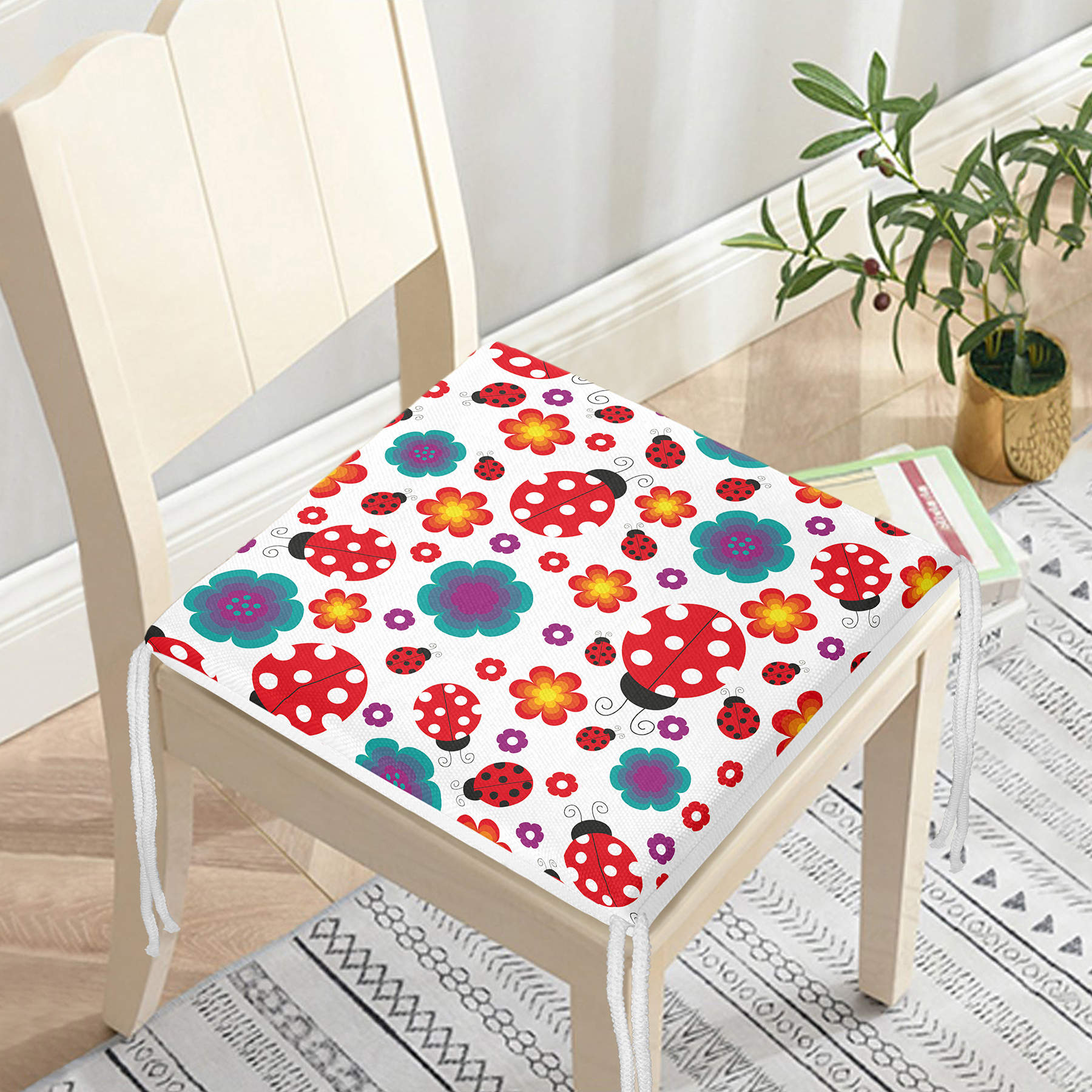 Realhomes Beyaz Zeminde Uğurböceği Dijital Baskılı Modern Sandalye Minderi Realhomes