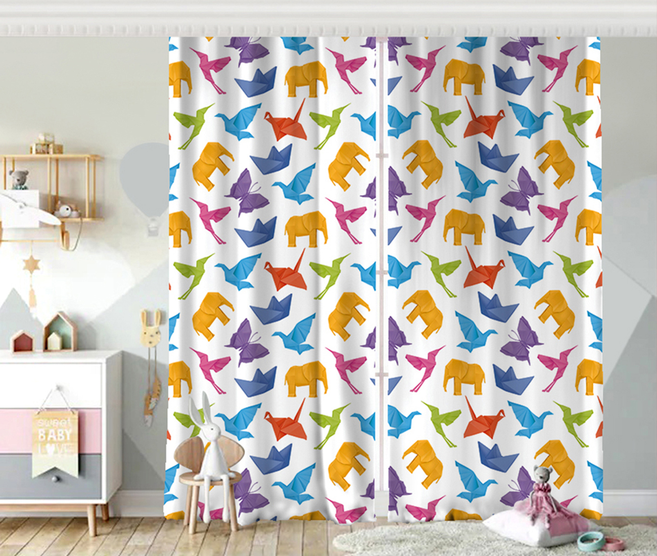 Realhomes Beyaz Zeminli Origami Sanatı Dijital Baskılı Modern Çocuk Odası Fon Perde