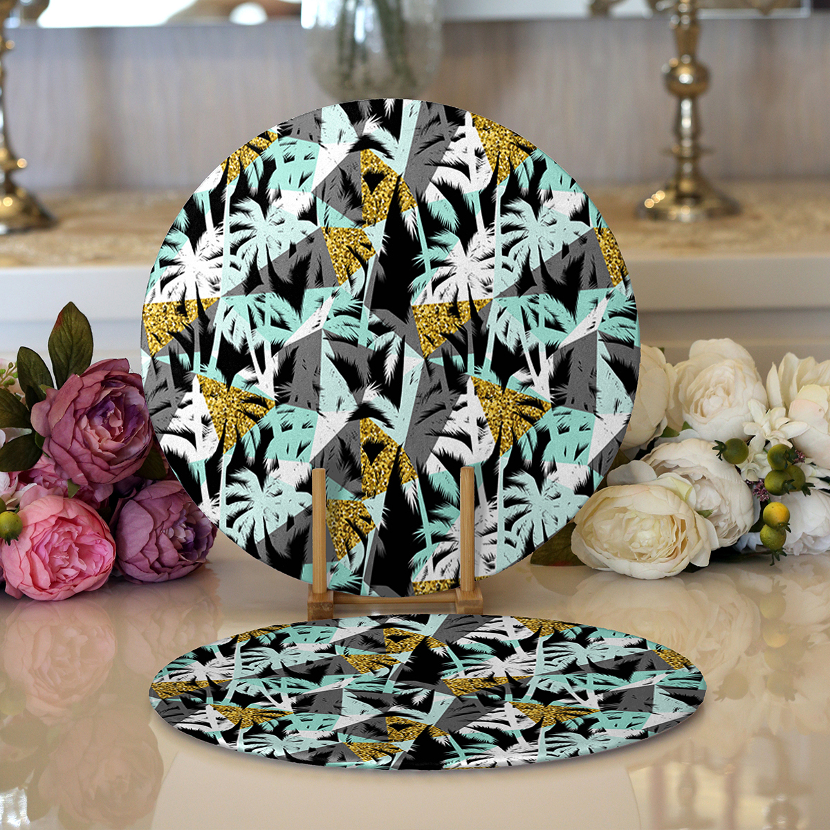 Realhomes Beyaz Zeminli Renkli Palmiye Desenli Dijital Baskılı Modern 2’li Yuvarlak Servis Altlığı – Supla