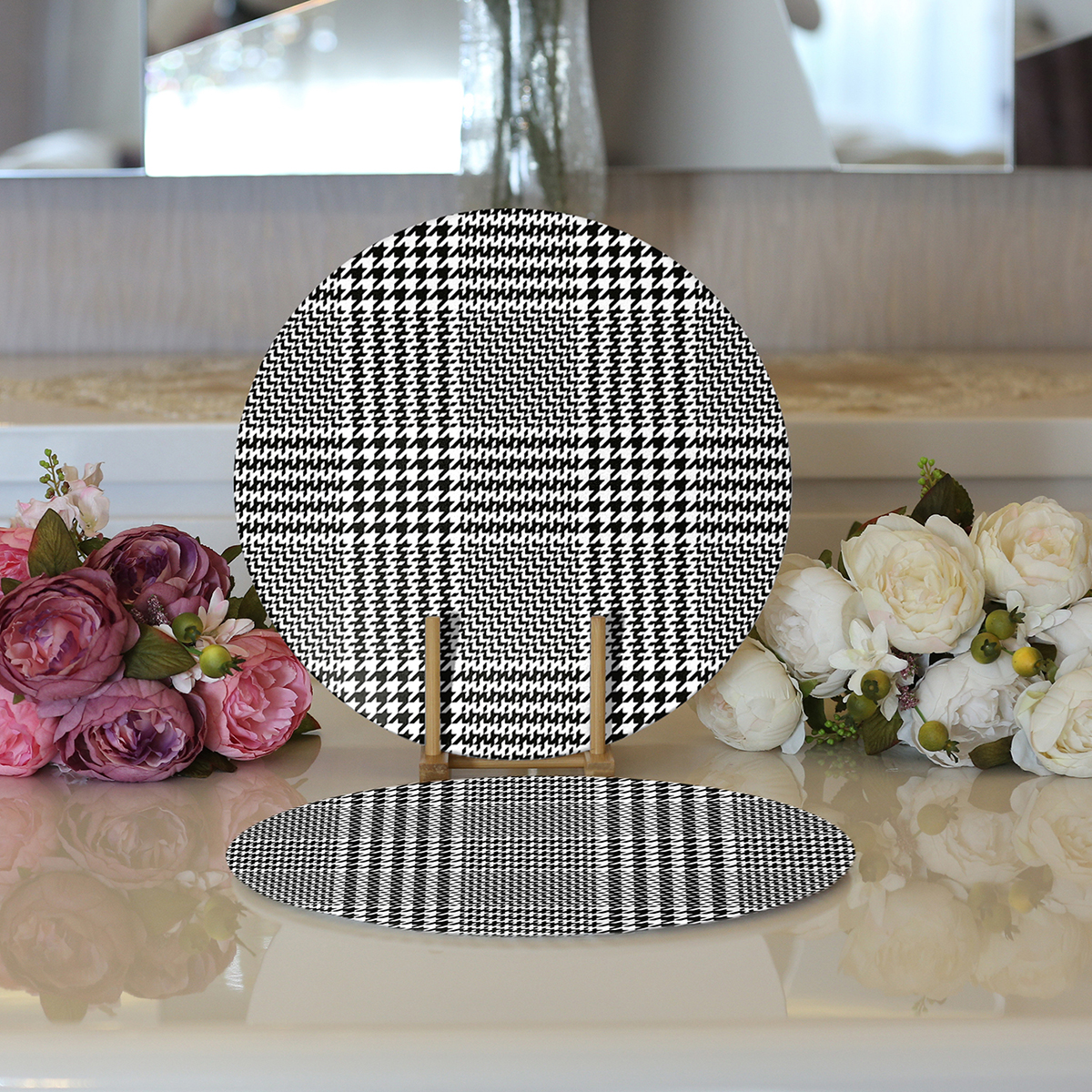 Realhomes Beyaz Zeminli Siyah Zebra Desenli Dijital Baskılı Modern 2’li Yuvarlak Servis Altlığı – Supla