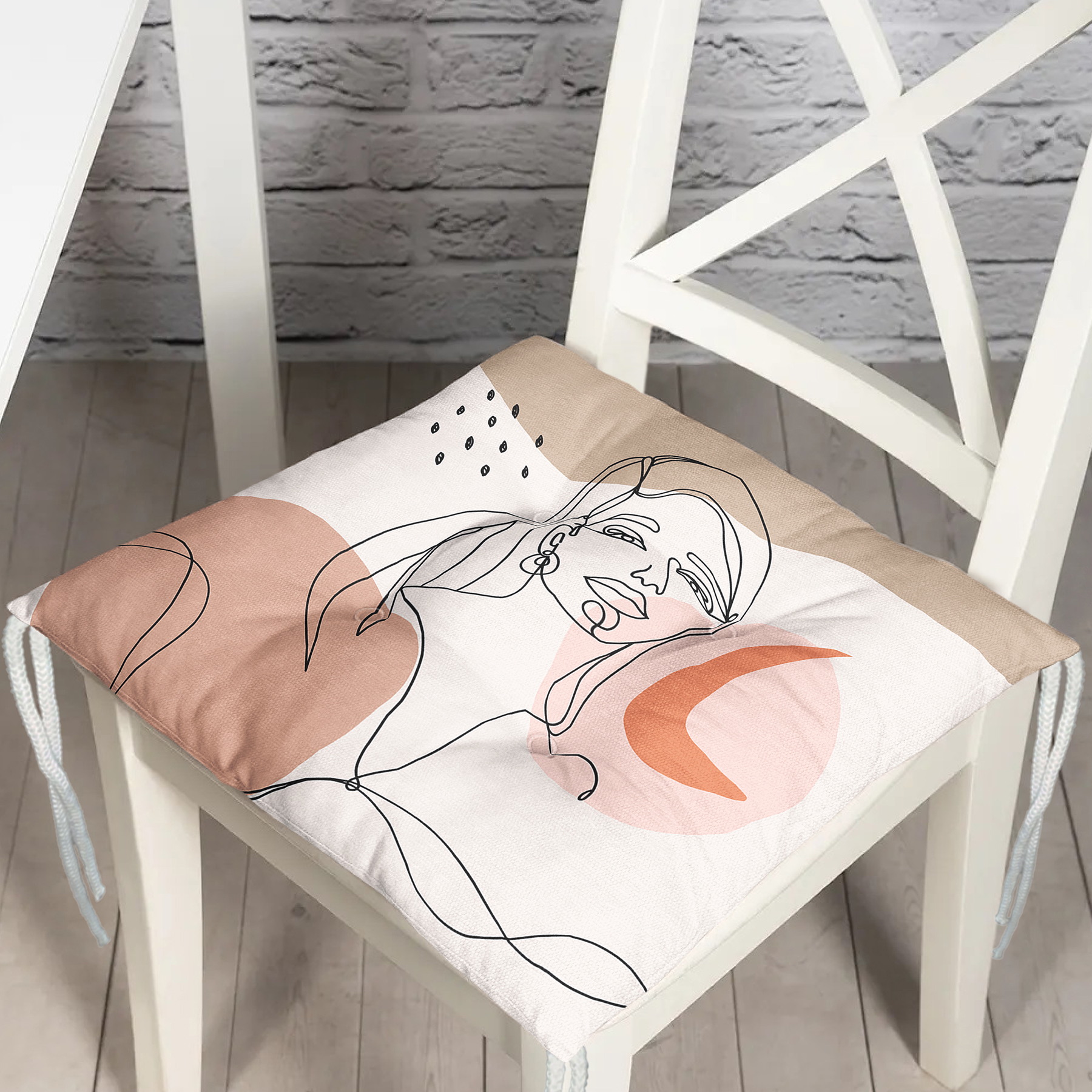 RealHomes Dijital Baskılı Pofuduk Düğmeli Sandalye Minderi