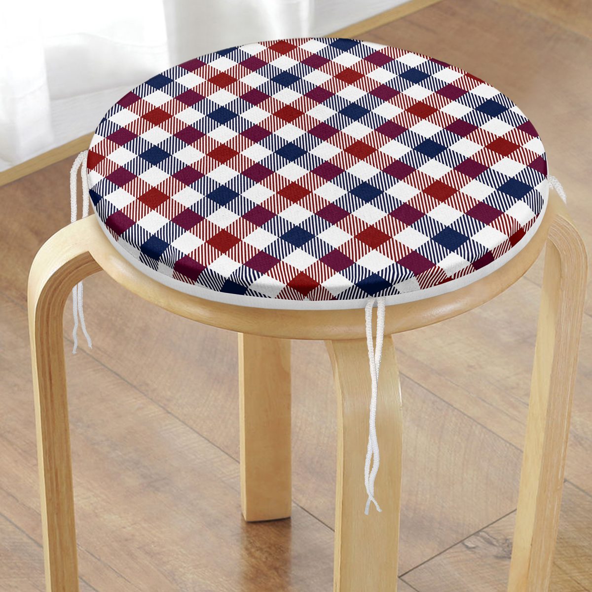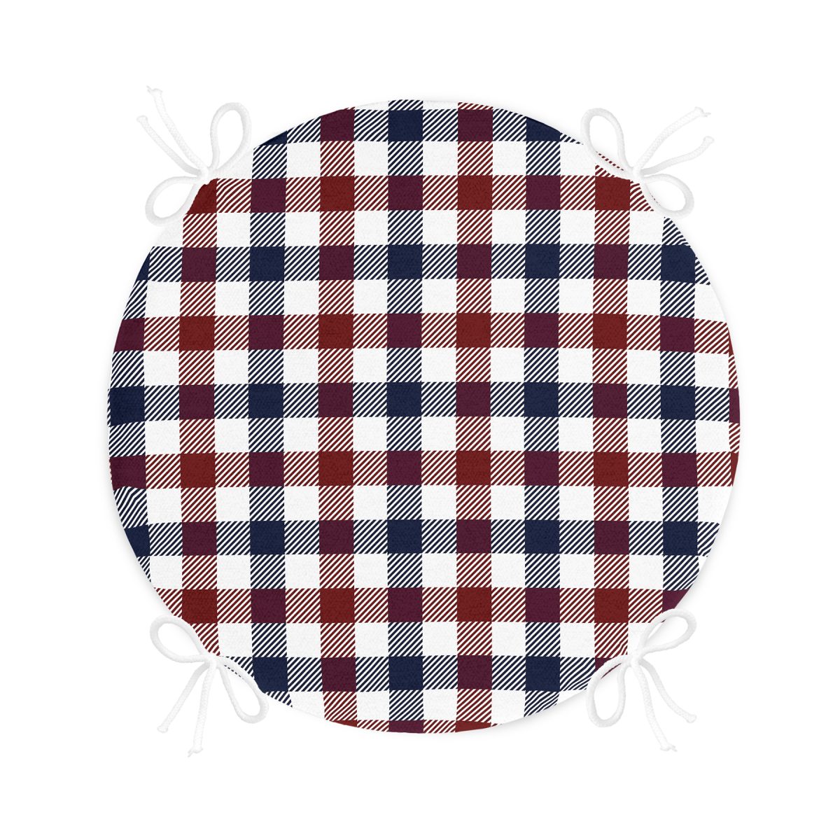 Realhomes Bordo Lacivert Ekose Desenli Modern Yuvarlak Fermuarlı Sandalye Minderi Realhomes