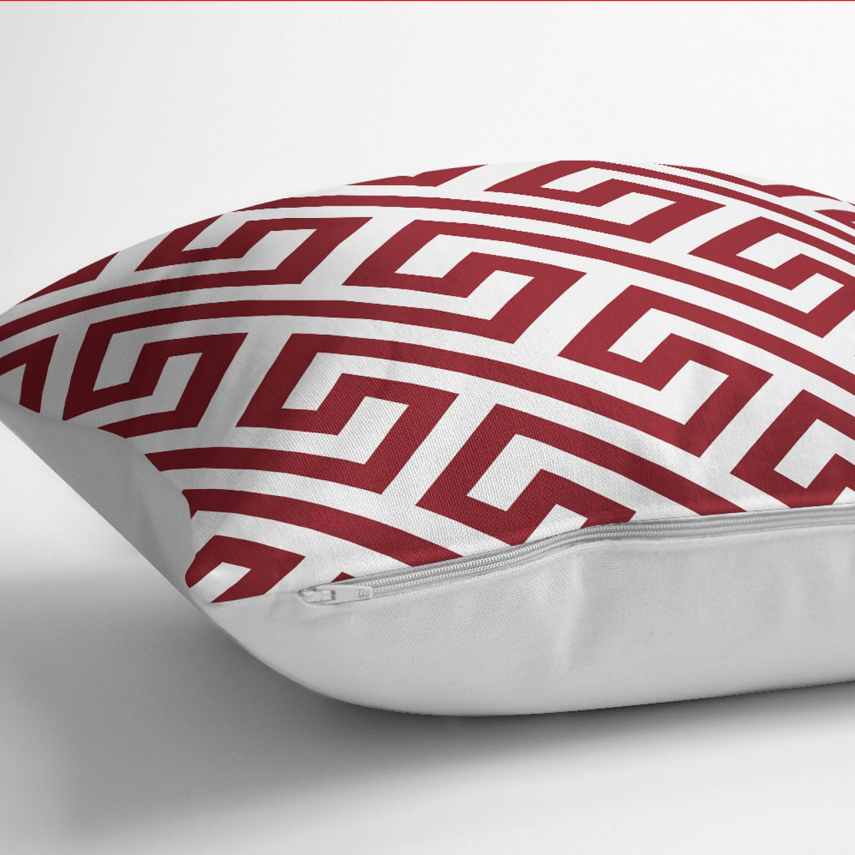 RealHomes Bordo Zeminde Geometrik Motifli Mozaik Desenli Dijital Baskılı Yastık Kırlent Kılıfı Realhomes