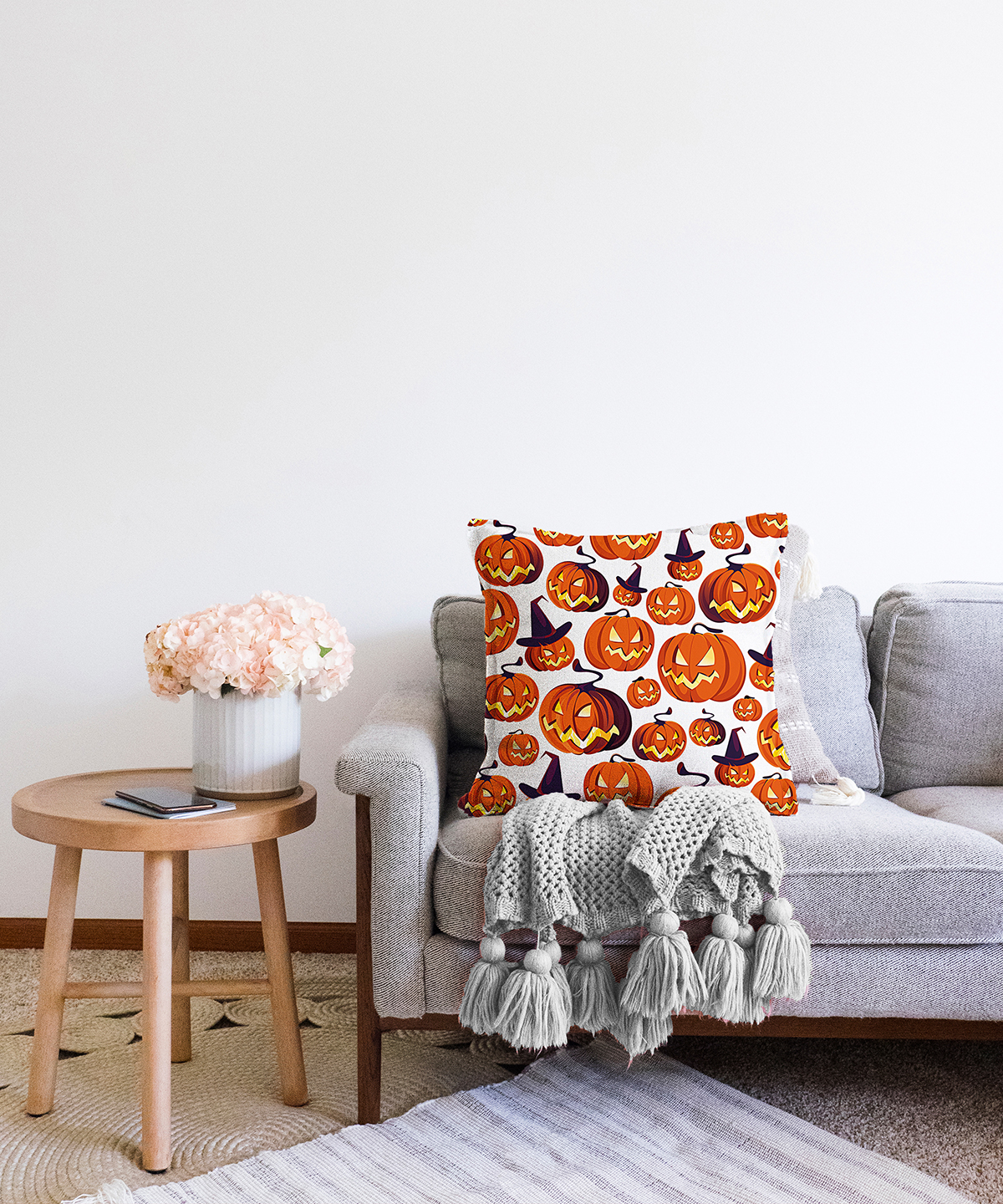 Realhomes Beyaz Zeminde Balkabağı Dijital Baskılı Modern Raşel Kadife Kırlent Kılıfı