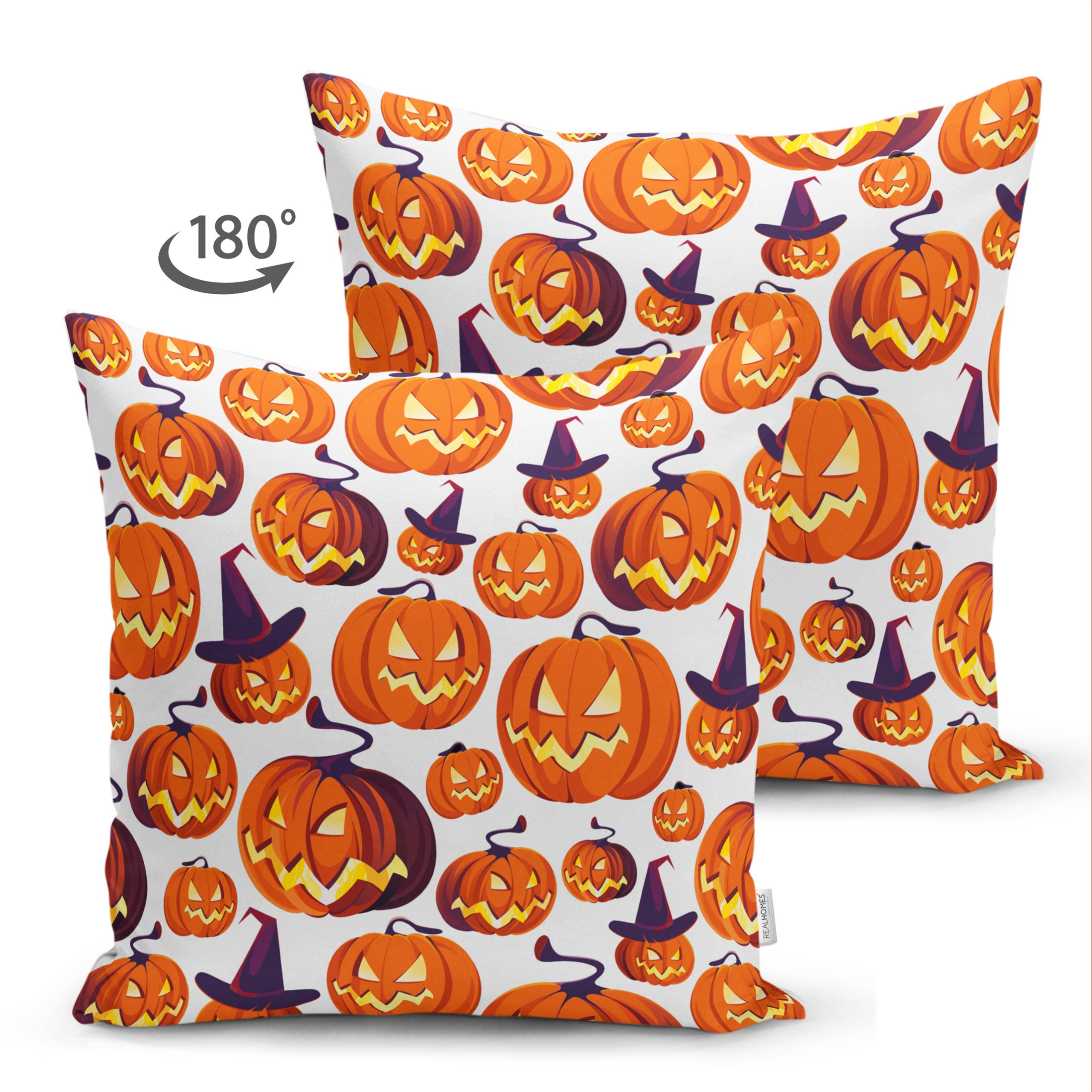 Realhomes Çift Taraflı Beyaz Zeminde Balkabağı Dijital Baskılı Modern Süet Kırlent Kılıfı Realhomes