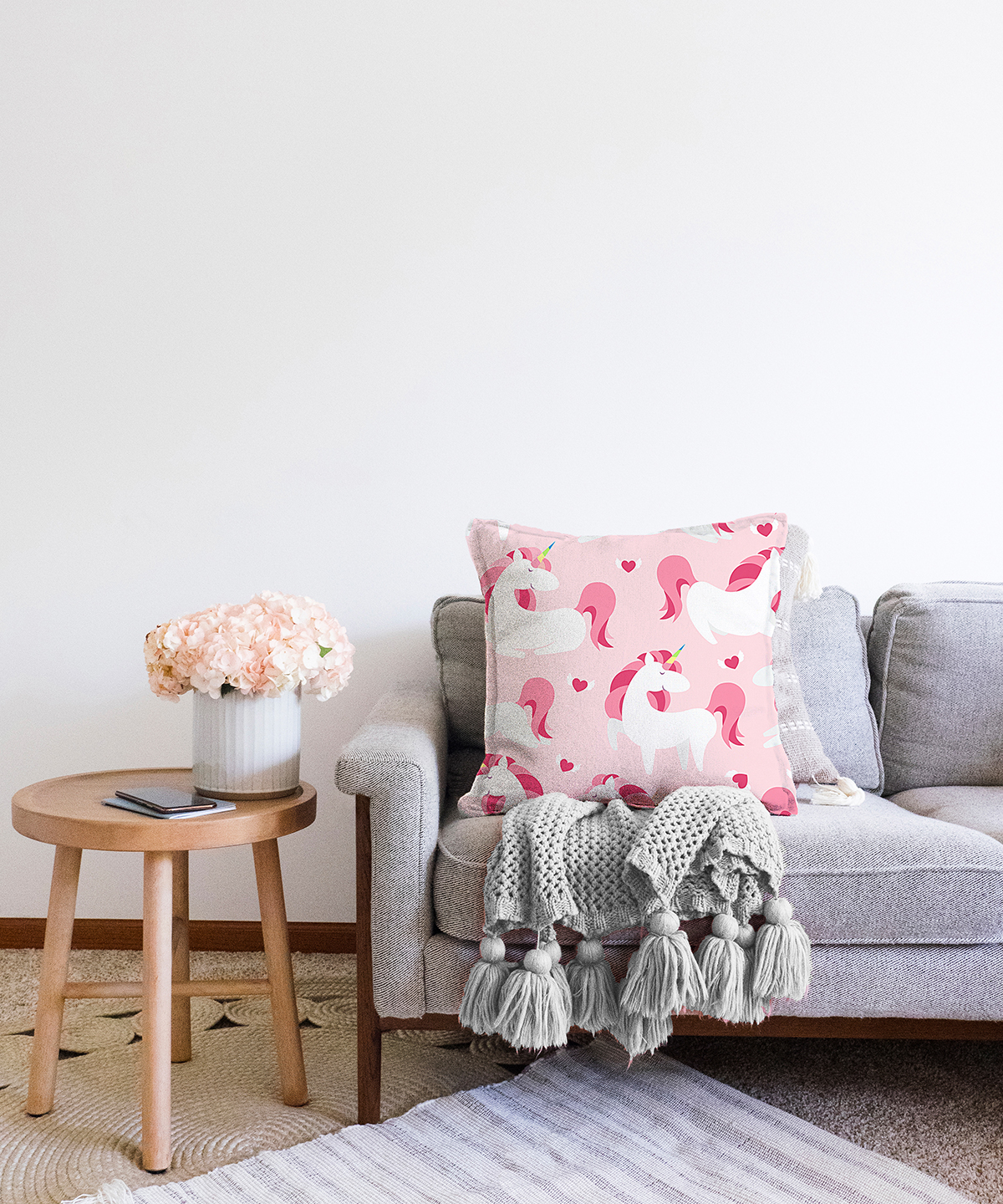 Realhomes Çocuk Odası Unicorn Tasarımlı Raşel Kadife Yastık Kırlent Kılıfı