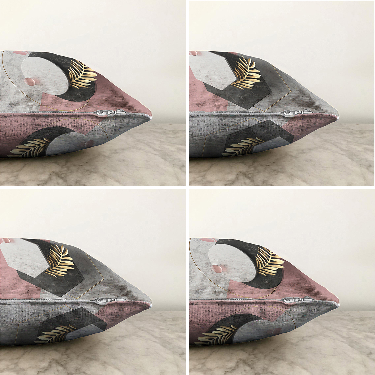Realhomes Çift Taraflı Geometrik Çift Renk Mermer Desenli 4’lü Şönil Yastık Kırlent Kılıf Seti