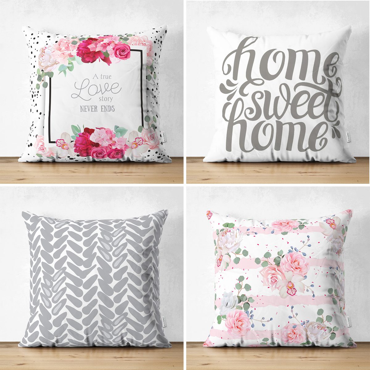 Realhomes Çift Taraflı Gri ve Pembe Renklerin Uyumu Konseptli 4'lü Modern Süet Kırlent Kılıf Seti Realhomes