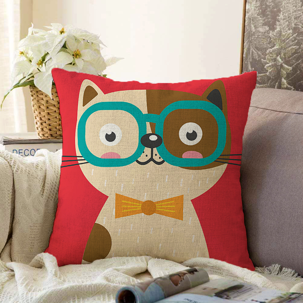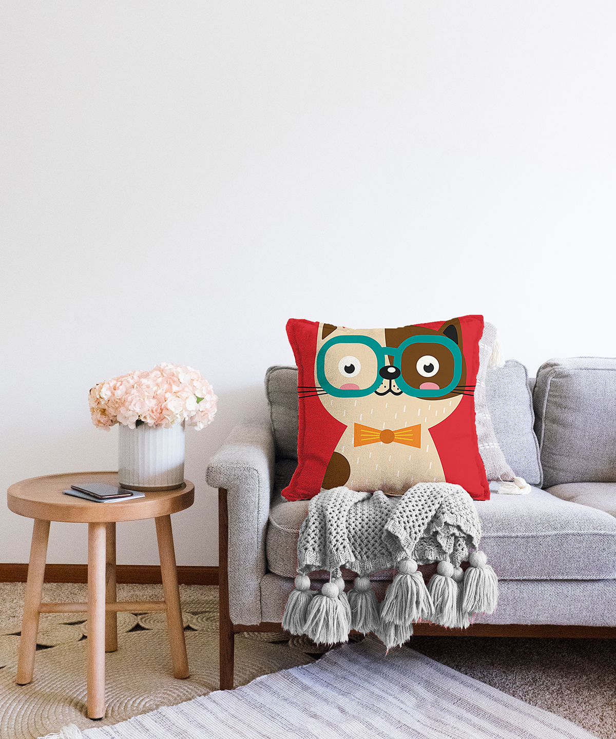 Realhomes Renkli Kedi Dijital Baskılı Modern Raşel Kadife Kırlent Kılıfı
