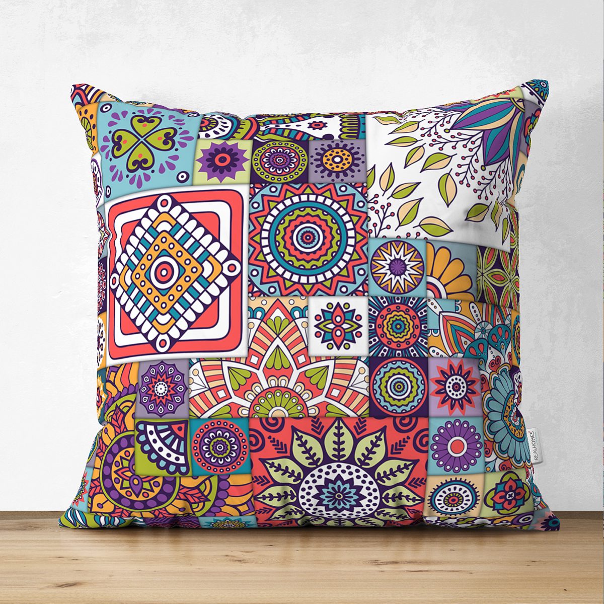 Realhomes Çift Taraflı Renkli Mozaik Desenli Dijital Baskılı Modern Süet Yastık Kırlent Kılıfı