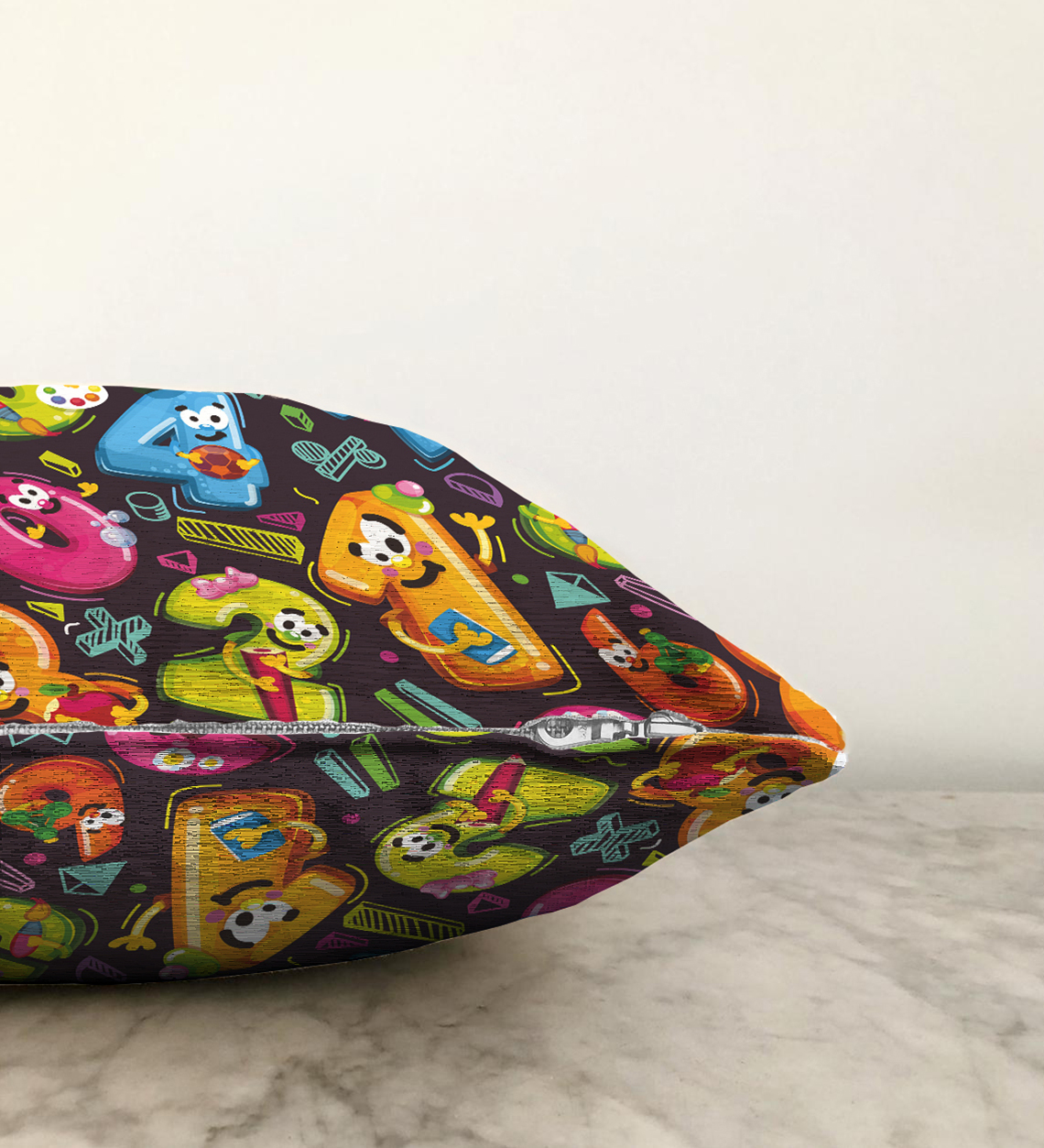 Realhomes Renkli Sayılar Dijital Baskılı Modern Raşel Kadife Kırlent Kılıfı