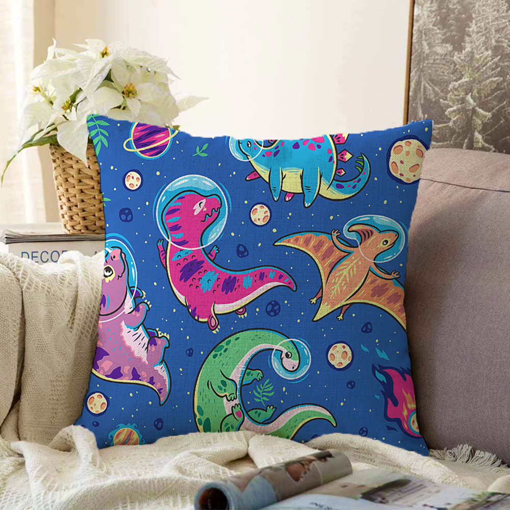 Realhomes Sevimli Dinazorlar Dijital Baskılı Modern Raşel Kadife Yastık Kılıfı